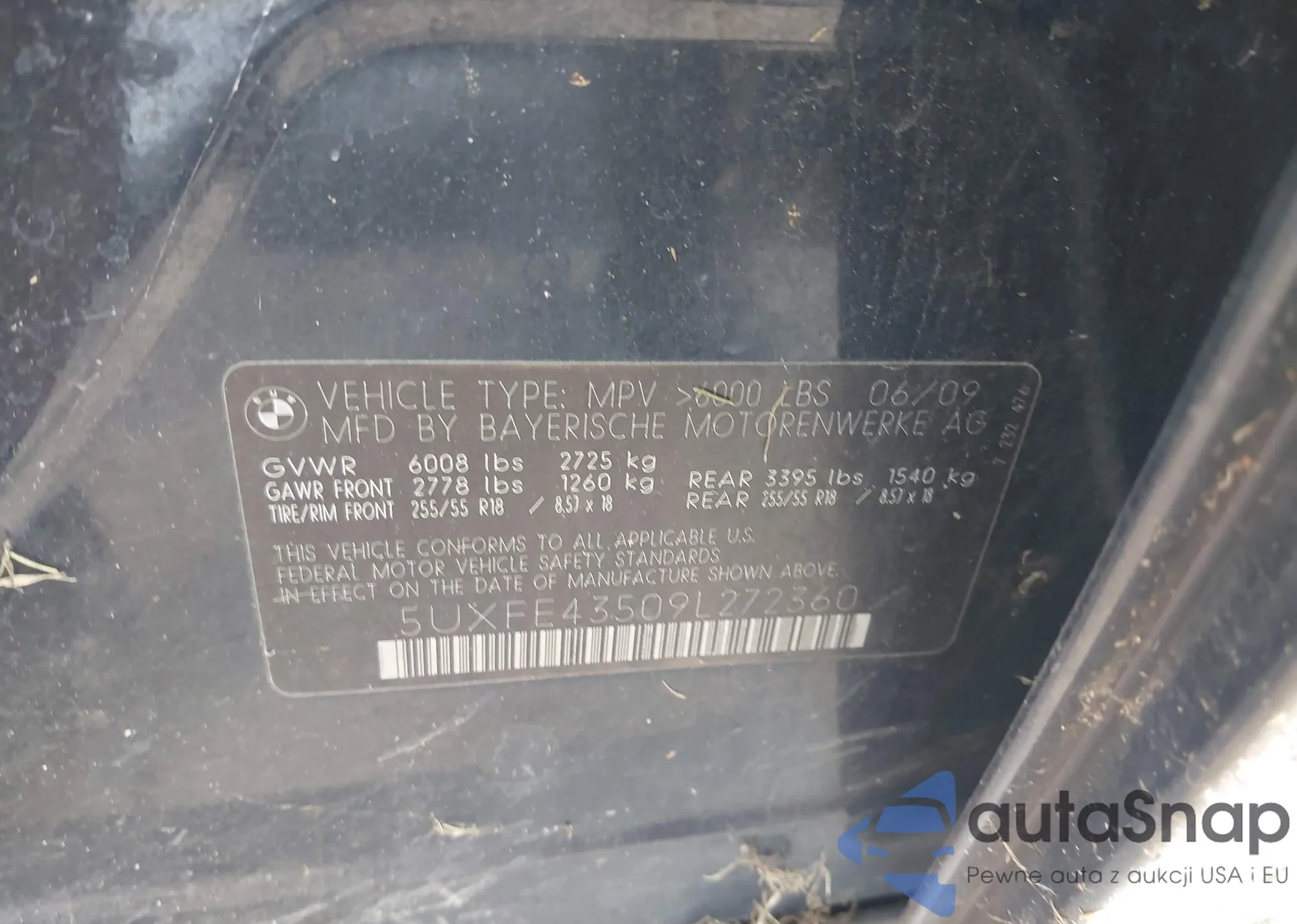 LOT: 43107510 VIN: 5UXFE43509L272360