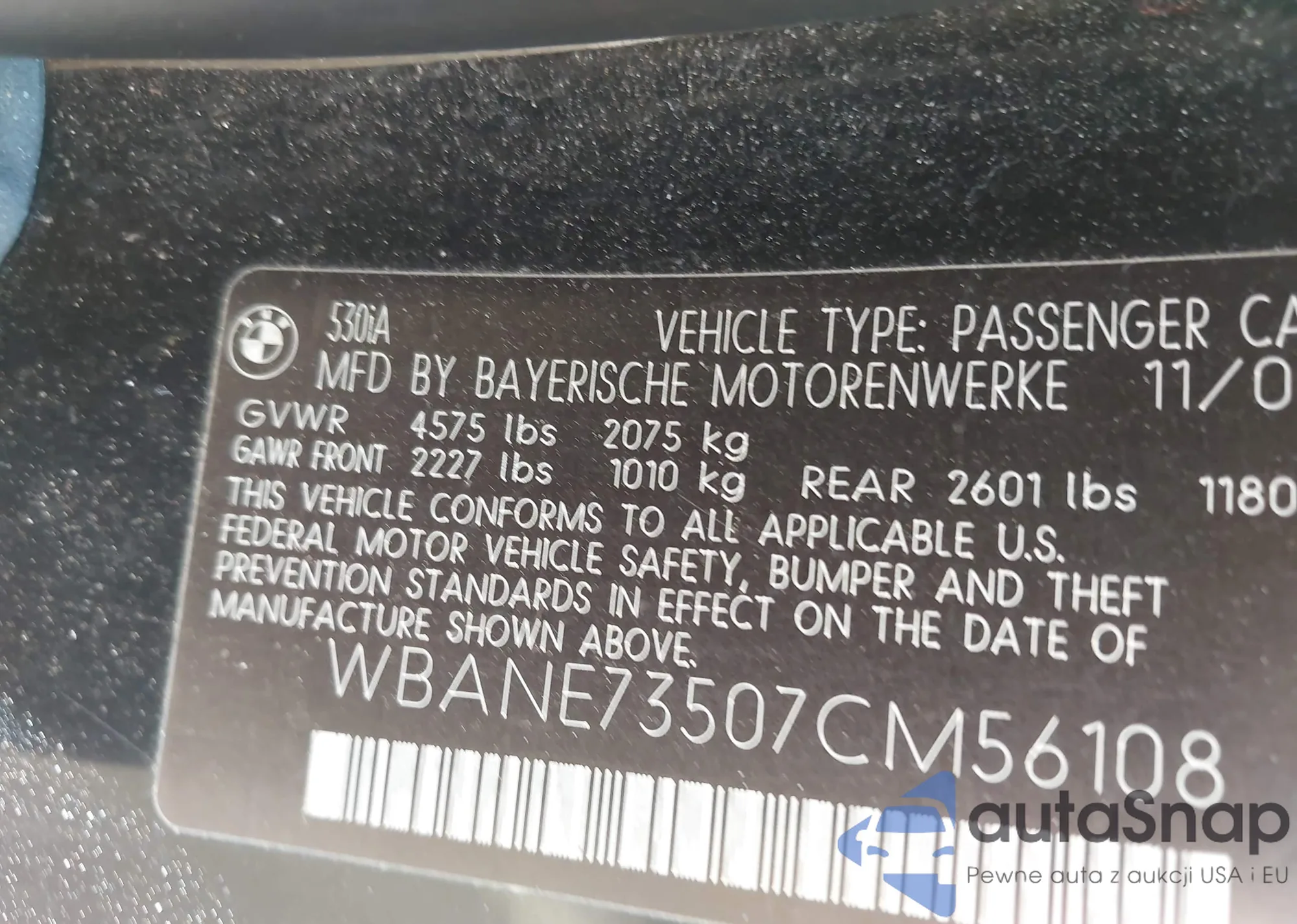 • VIN WBANE73507CM56108