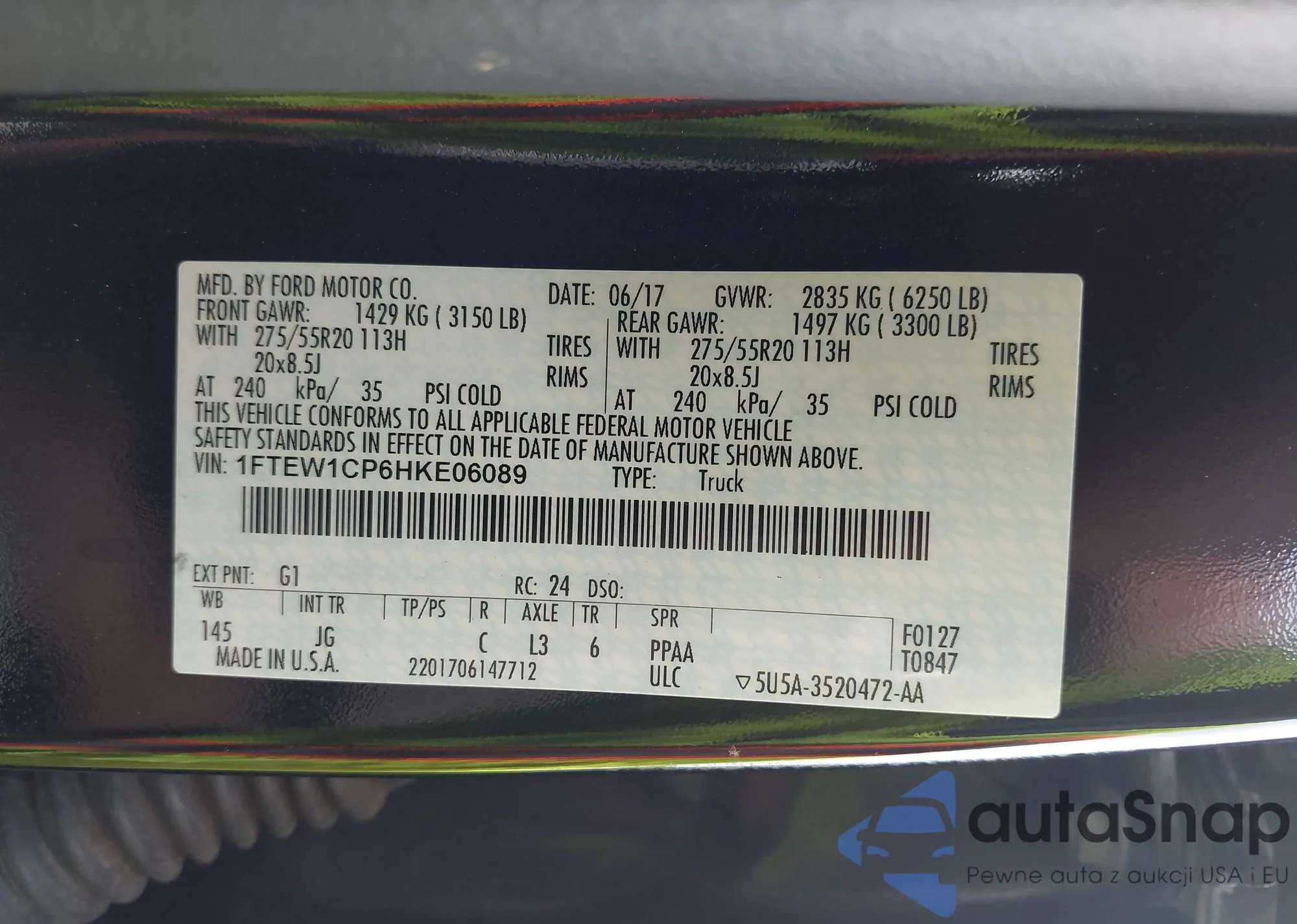 • VIN 1FTEW1CP6HKE06089