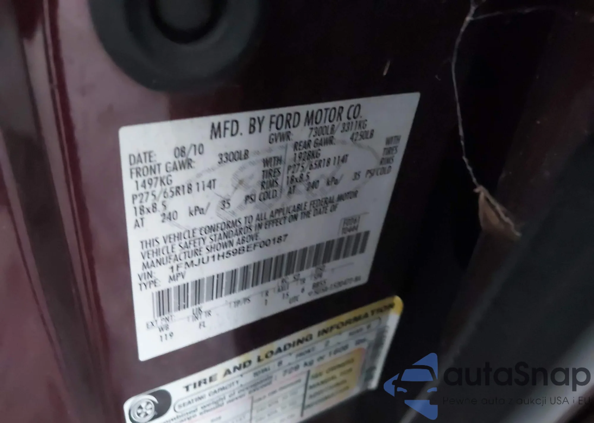 • VIN 1FMCA11U5SZB88106