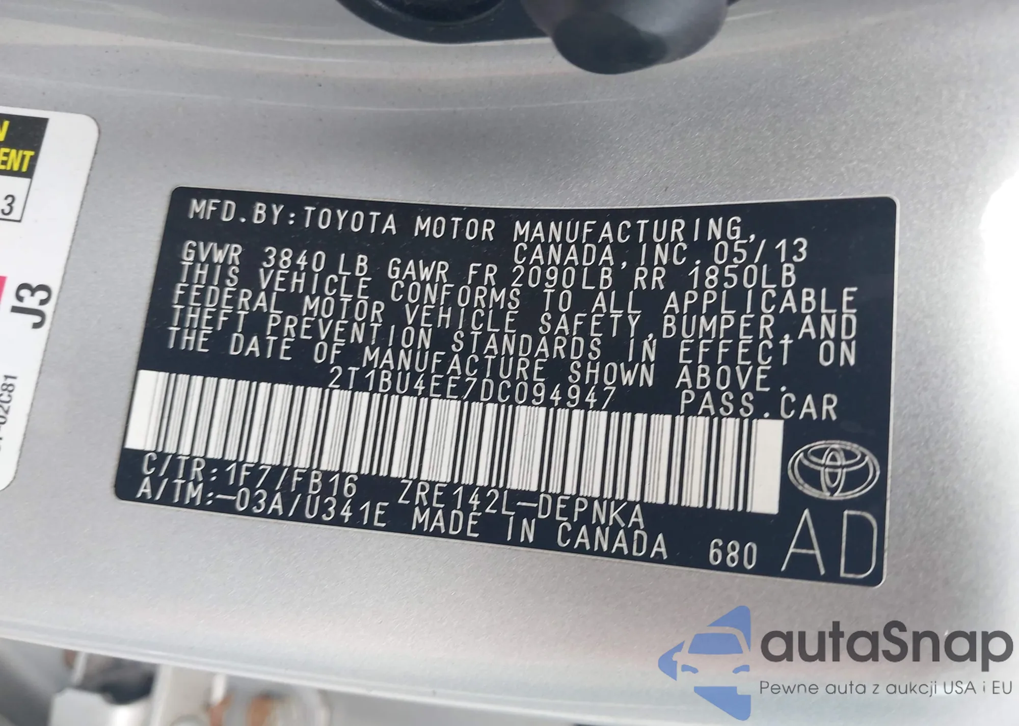 • VIN 2T1BU4EE7DC094947