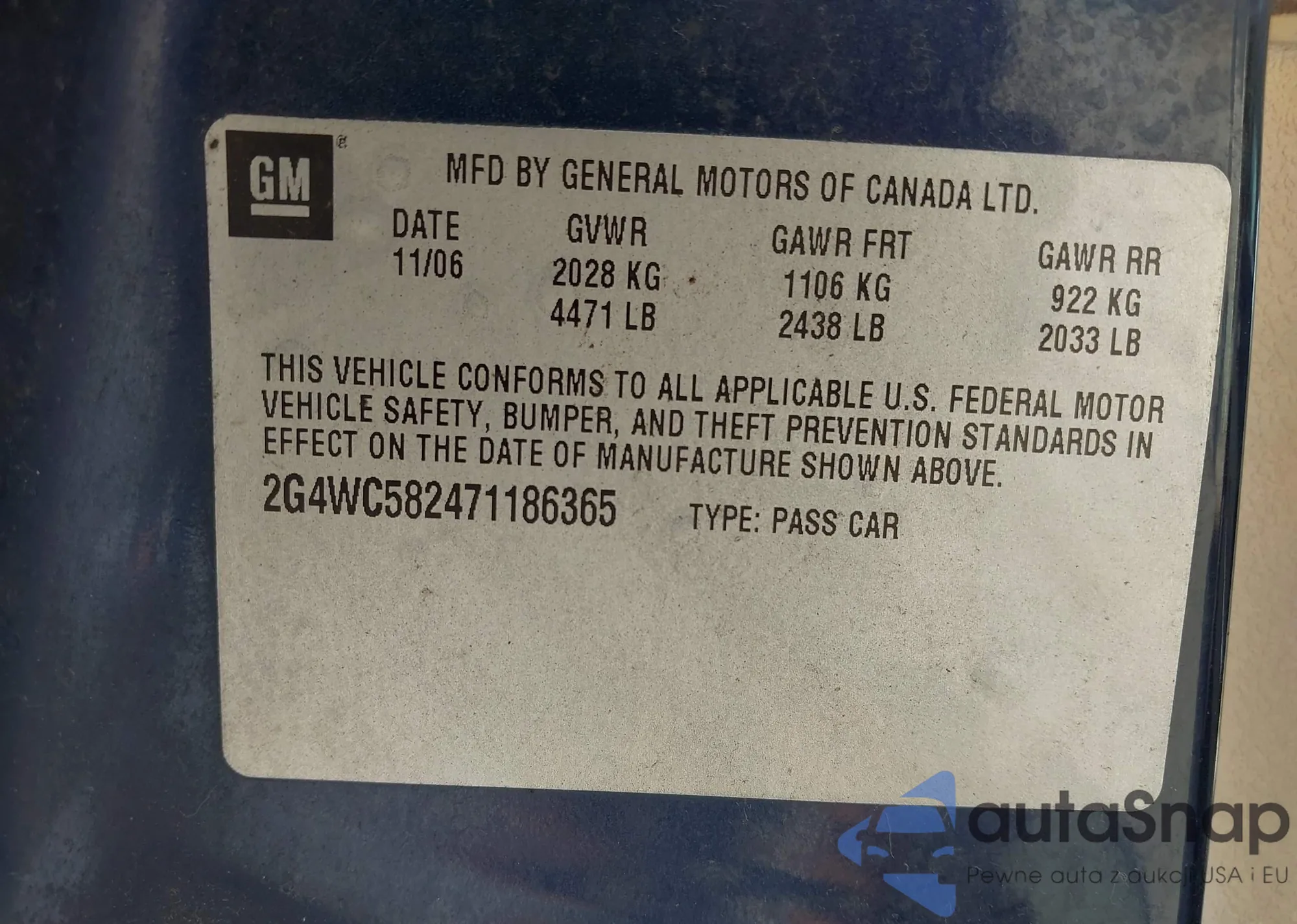 LOT: 43235572 VIN: 2G4WC582471186365
