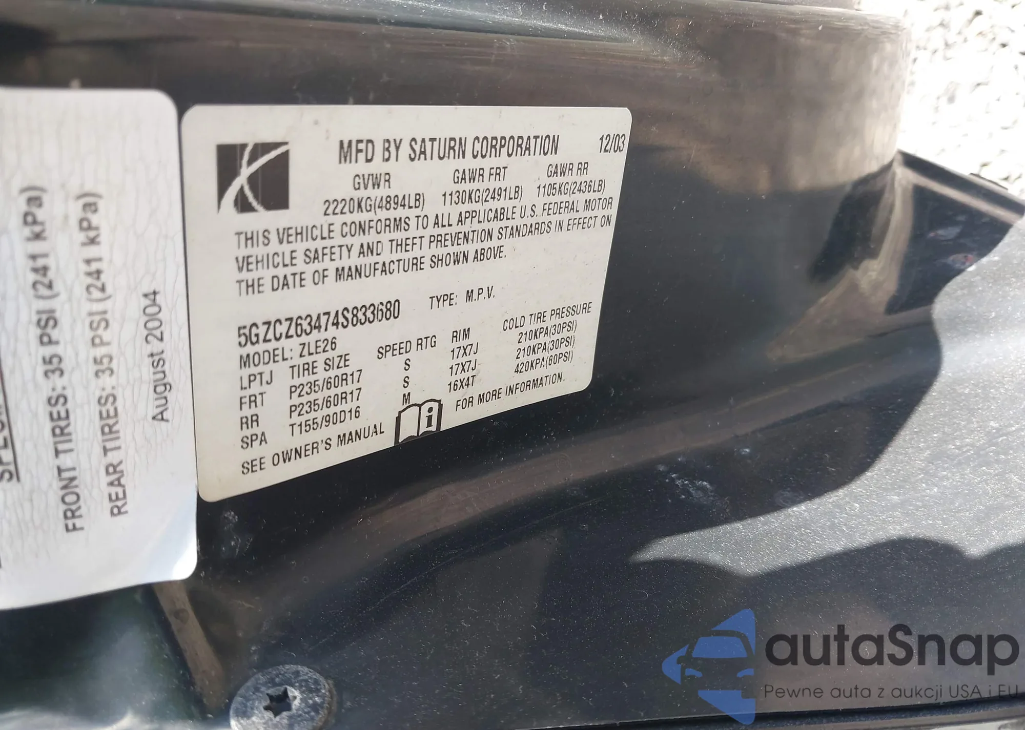 LOT: 42149061 VIN: 5GZCZ63474S833680
