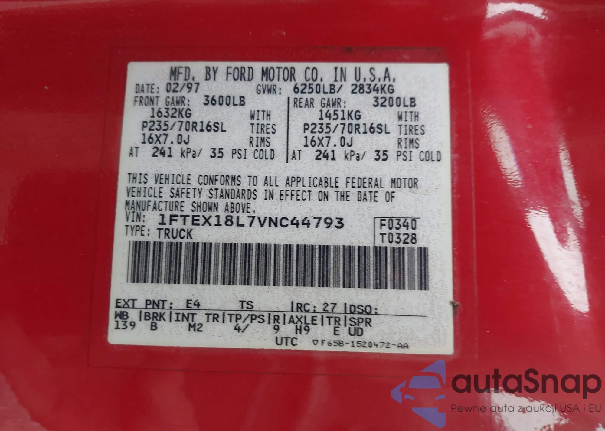 • VIN 1FTEX18L7VNC44793