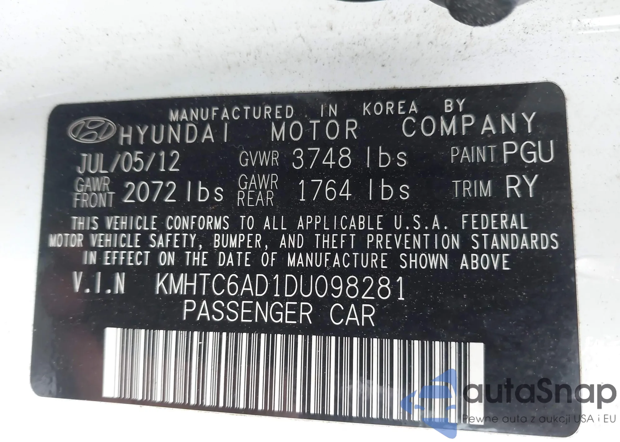 LOT: 42103679 VIN: 1HGCR2F89EA117235