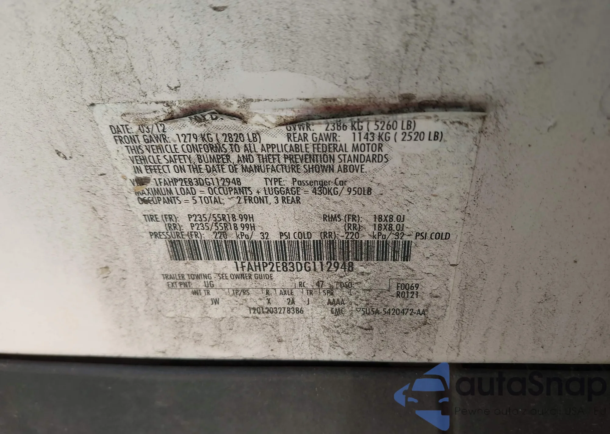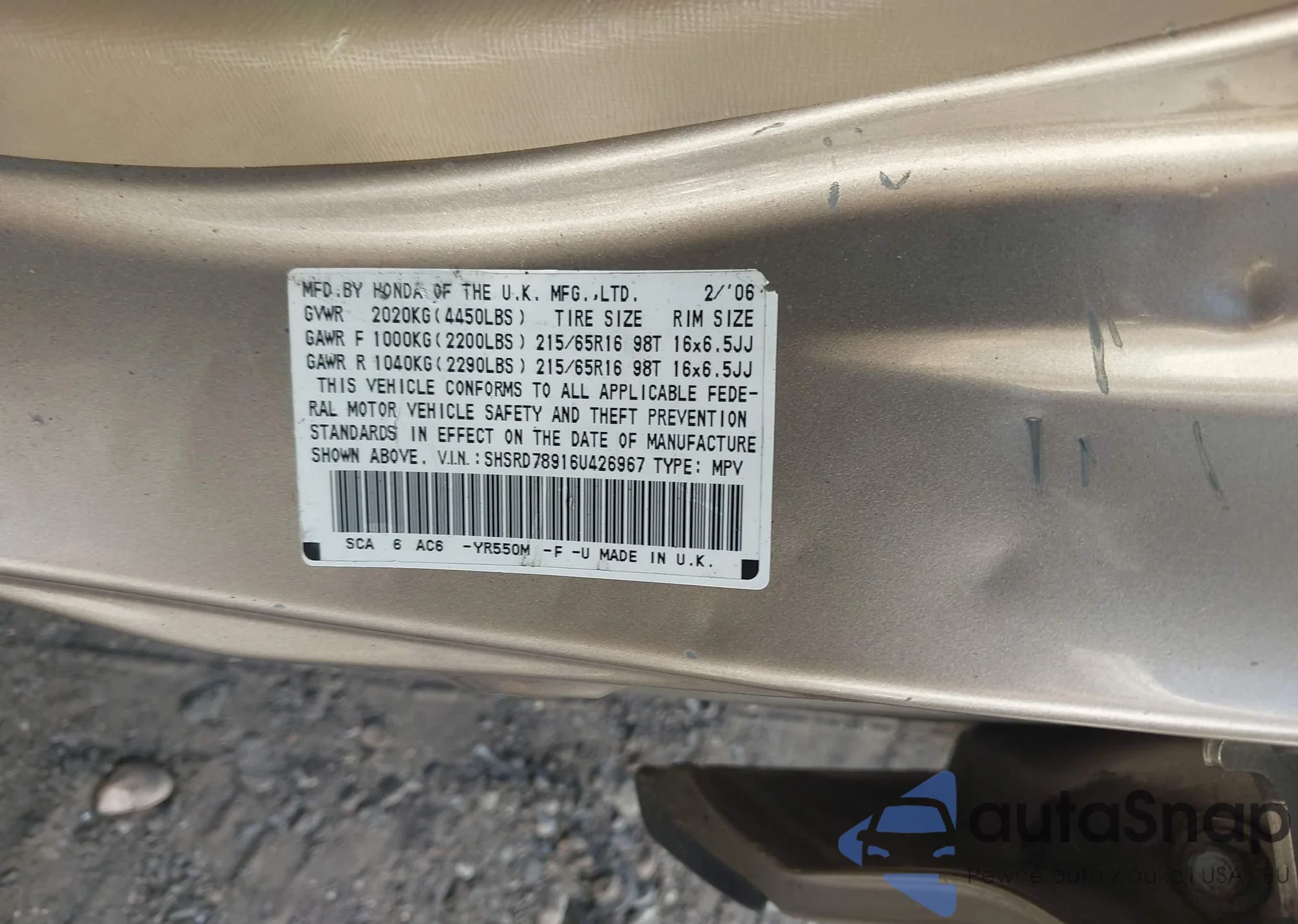 LOT: 42843532 VIN: SHSRD78916U426967