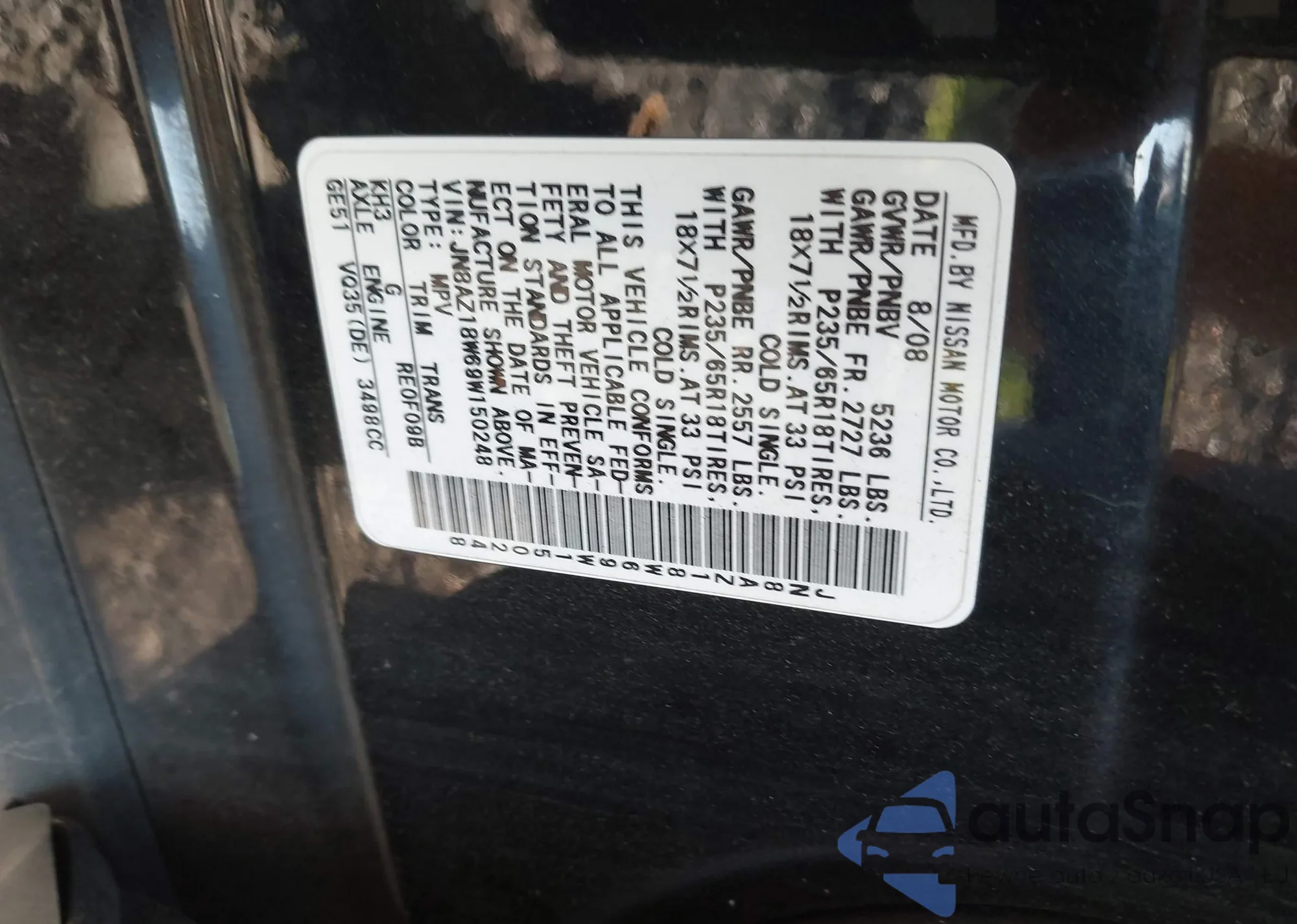 • VIN JN8AZ18W69W150248