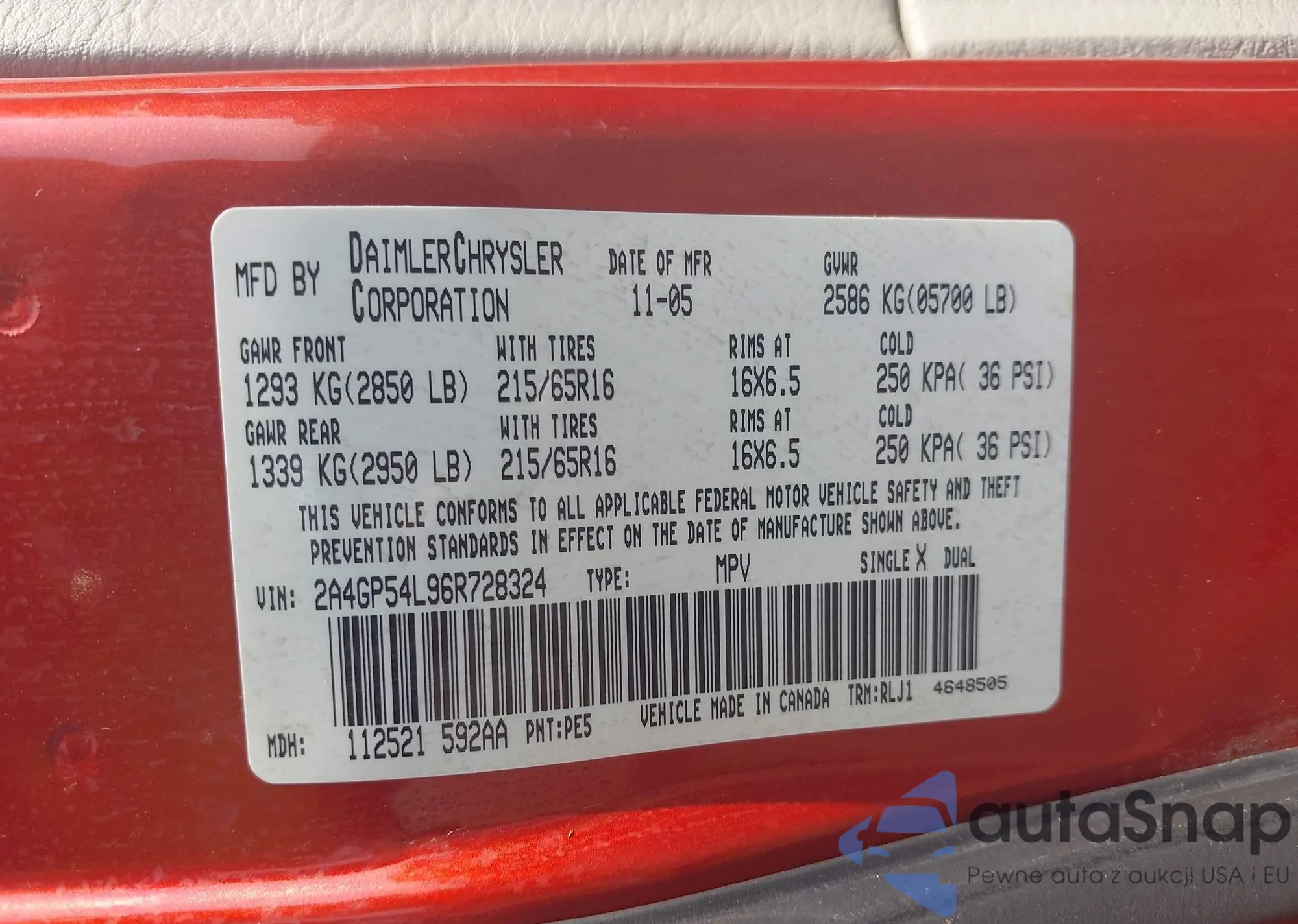 • VIN 2A4GP54L96R728324