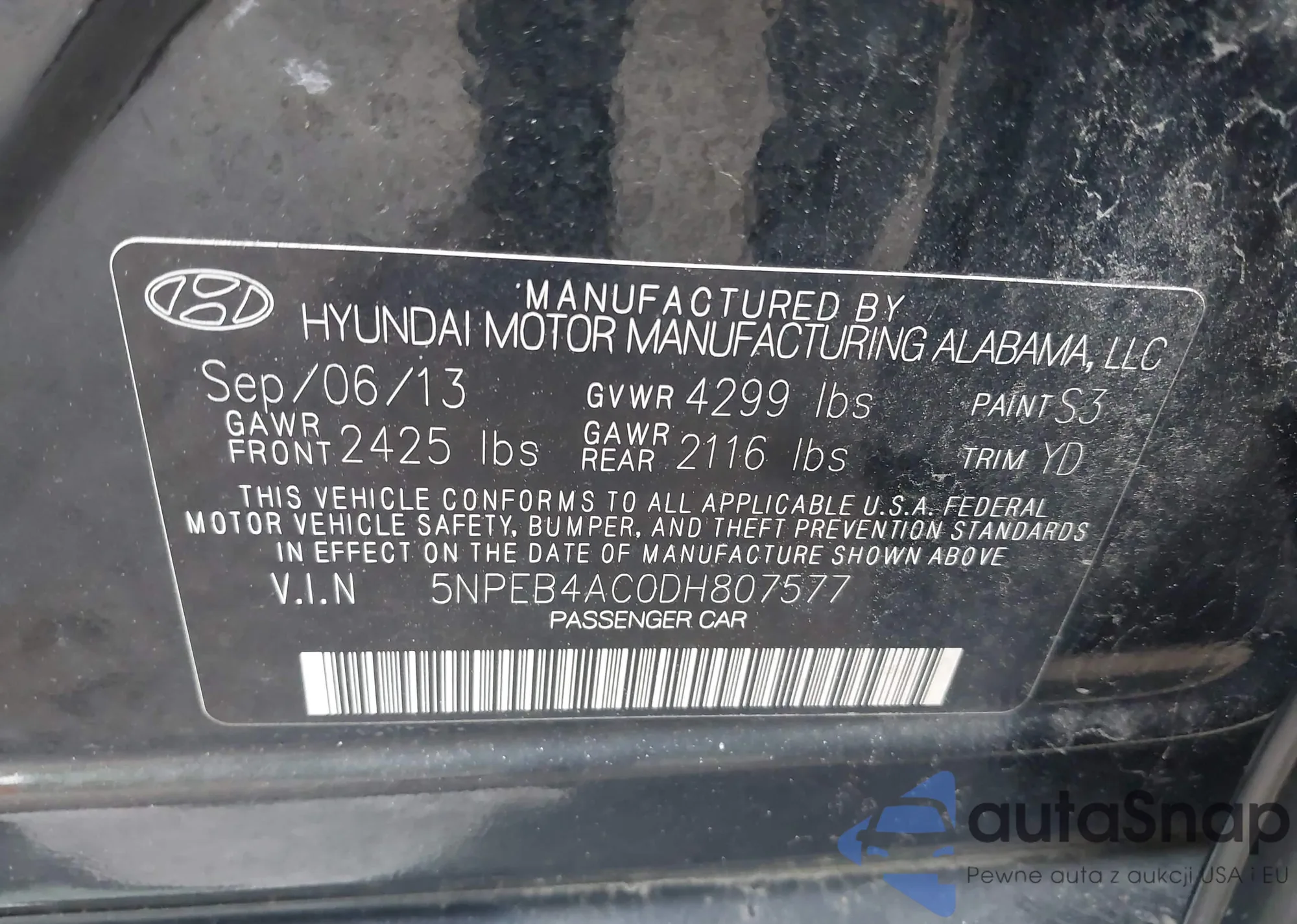 • VIN 5NPEB4AC0DH807577