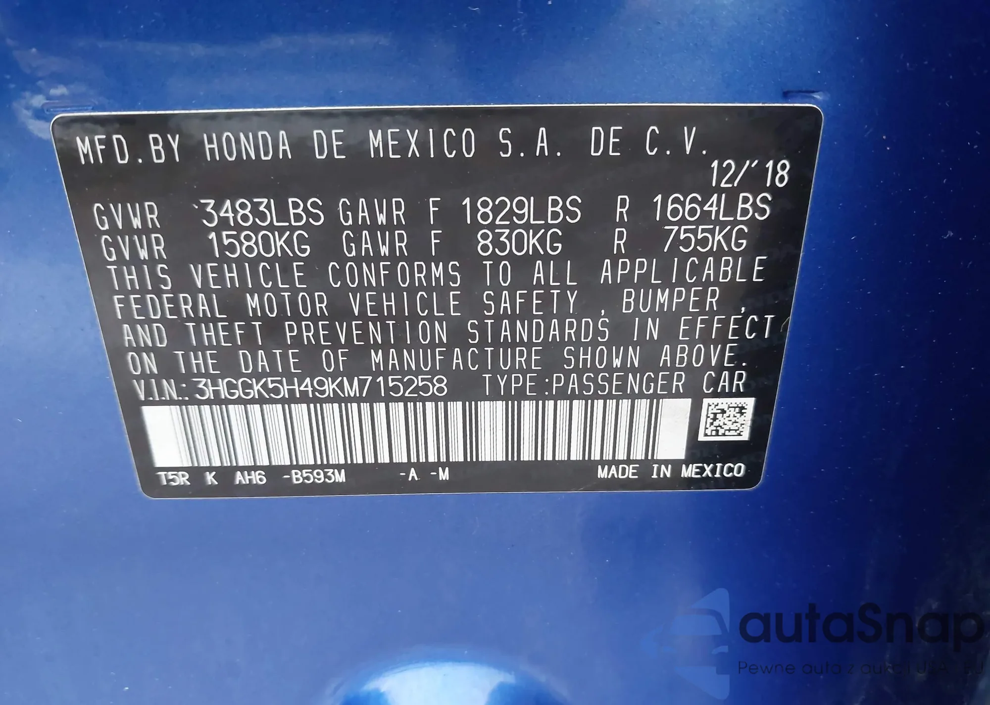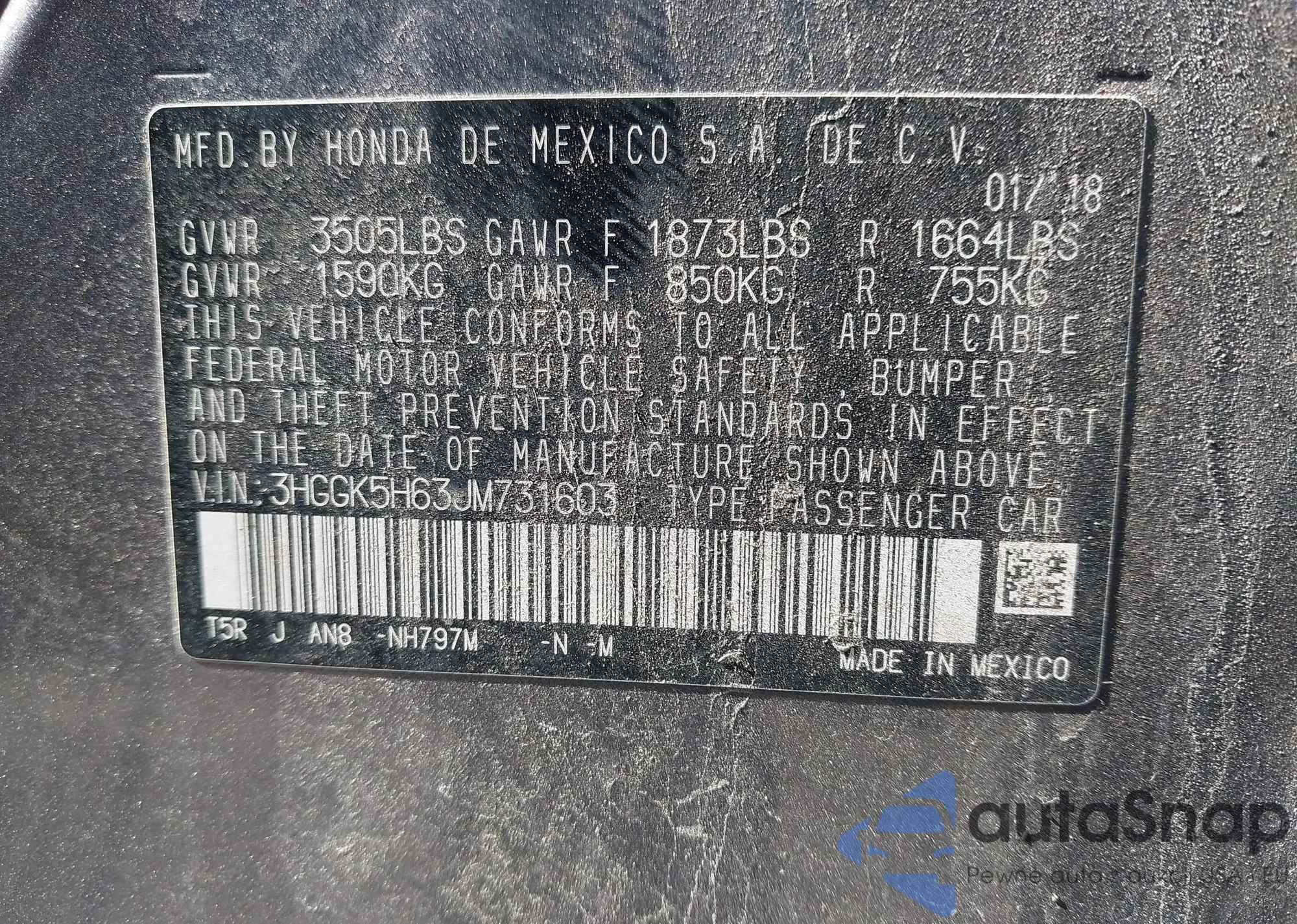 • VIN 3HGGK5H63JM731603