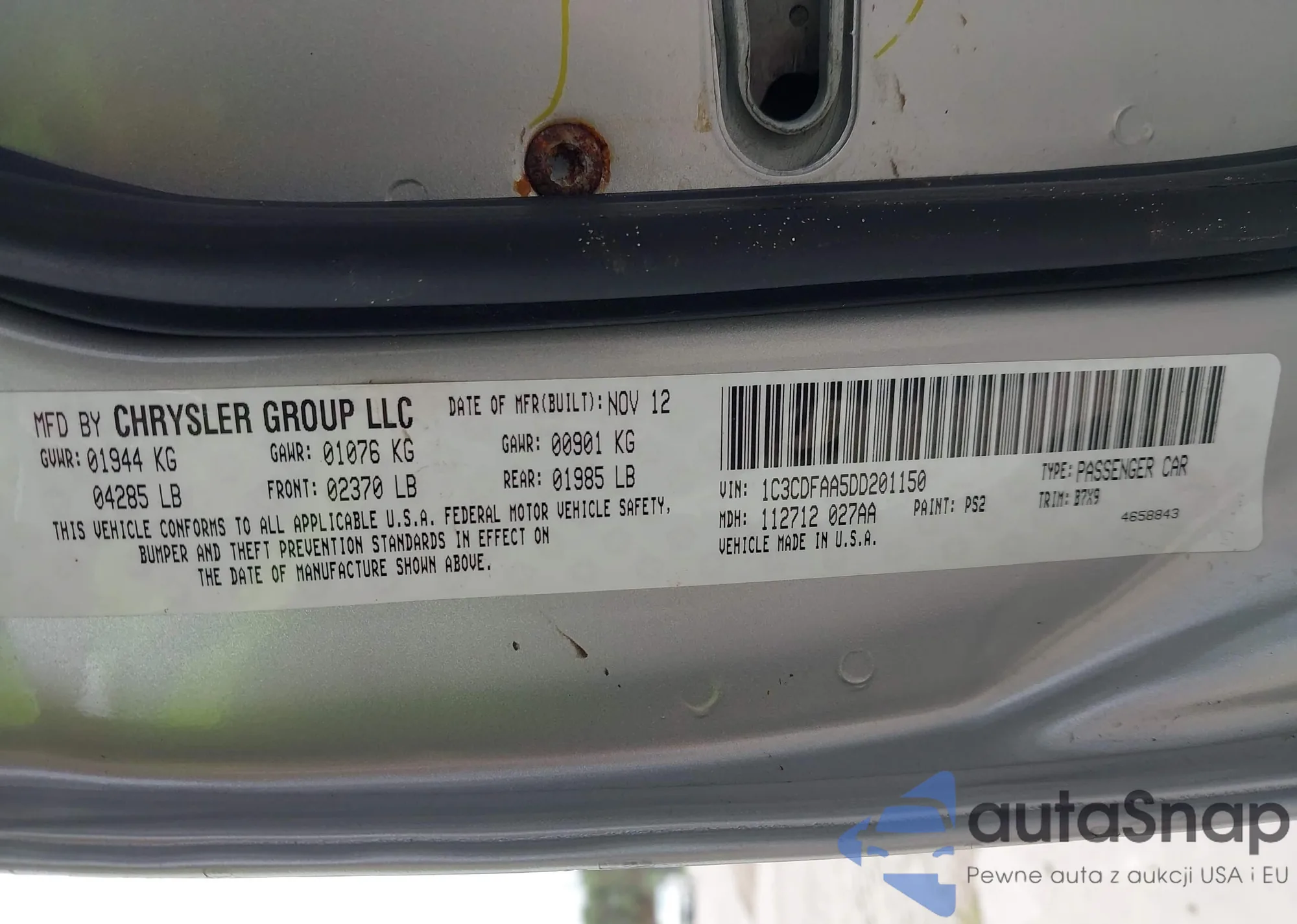 LOT: 43319103 VIN: 1G1PA5SG2D7282859