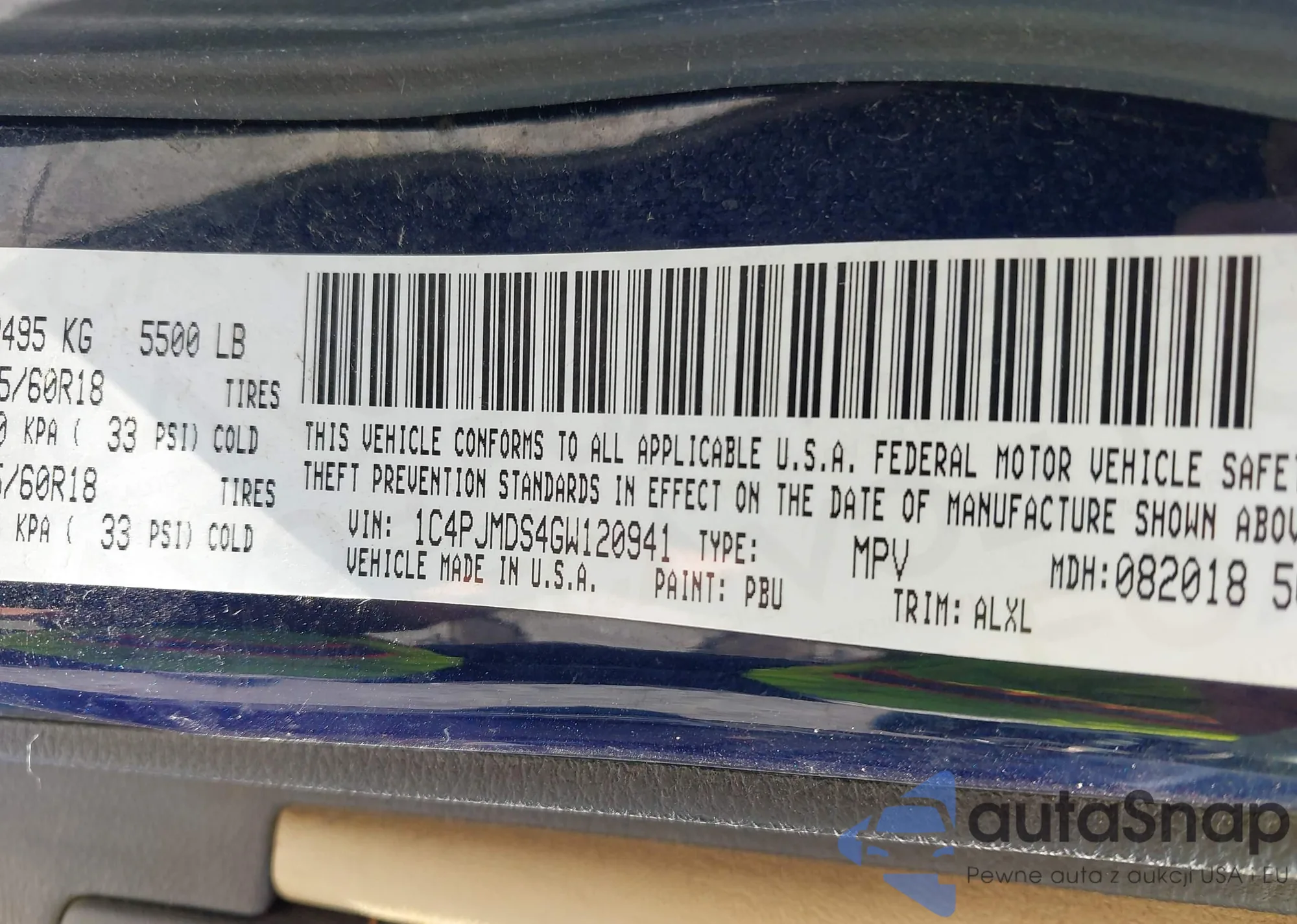 LOT: 42951273 VIN: 1C4PJMDS4GW120941