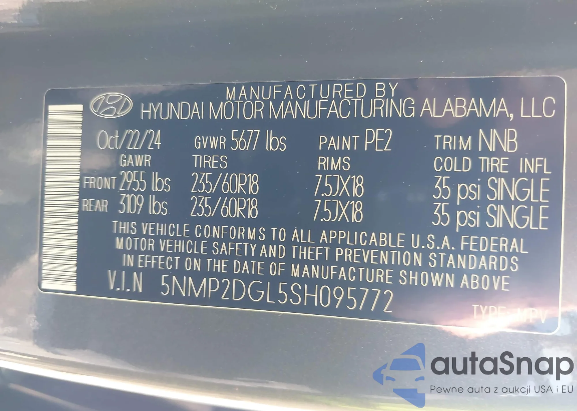 • VIN 5NMP2DGL5SH095772