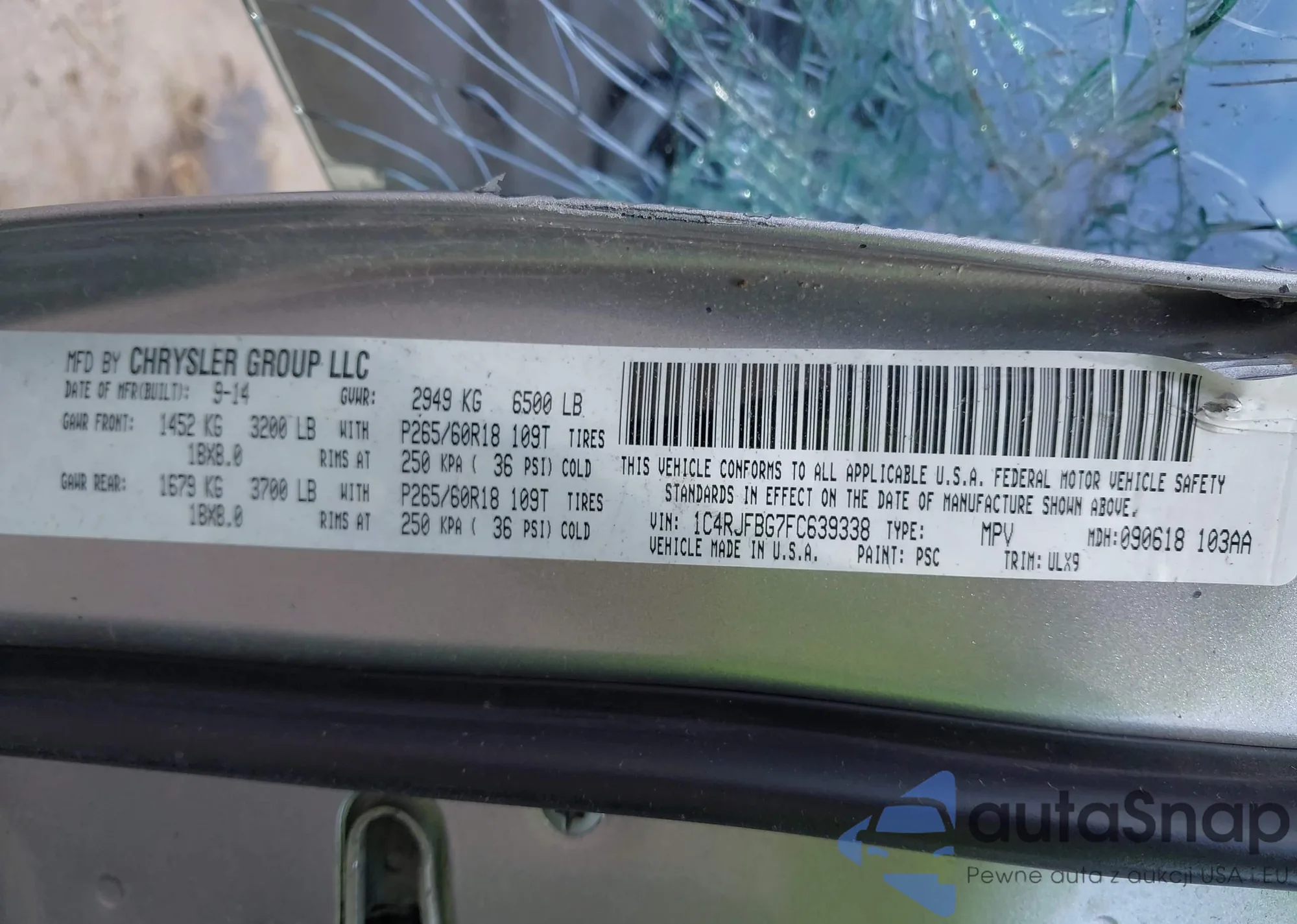 • VIN 1C4RJFBG7FC639338