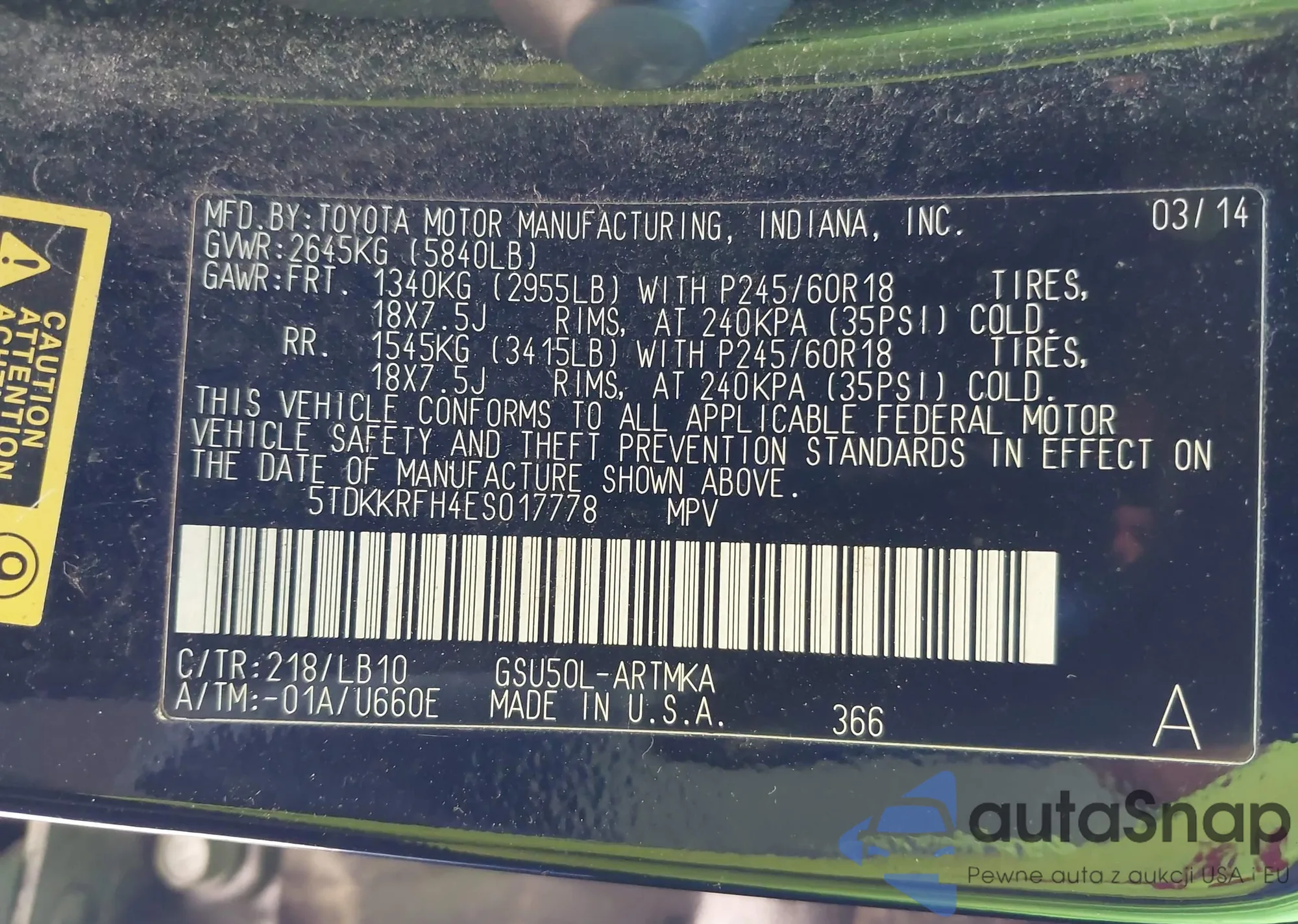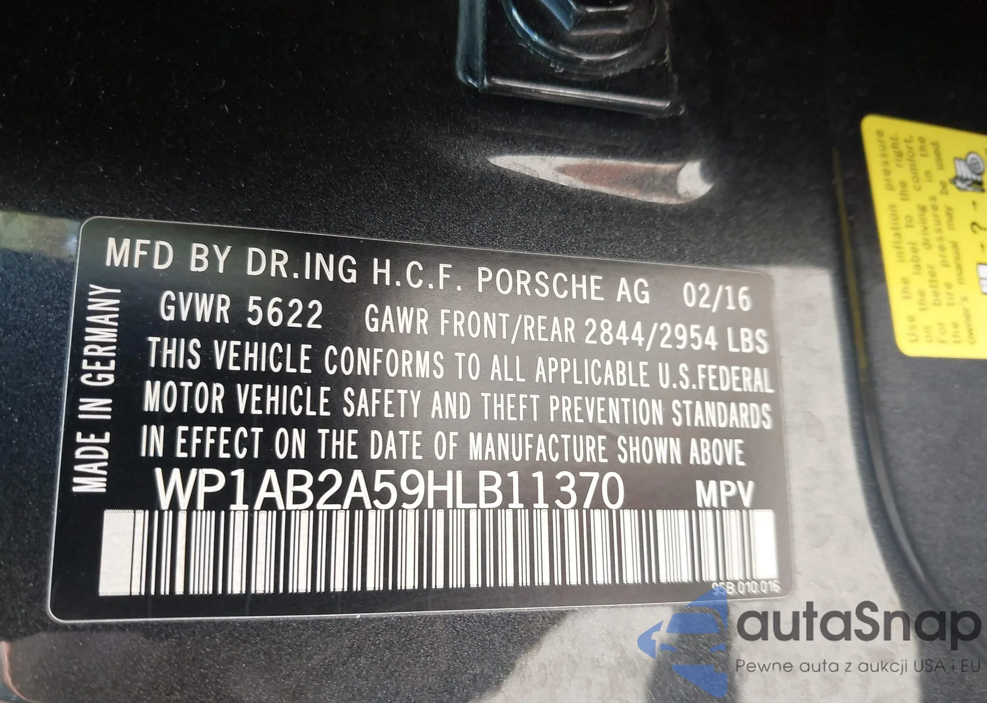 LOT: 42302928 VIN: WP1AB2A59HLB11370