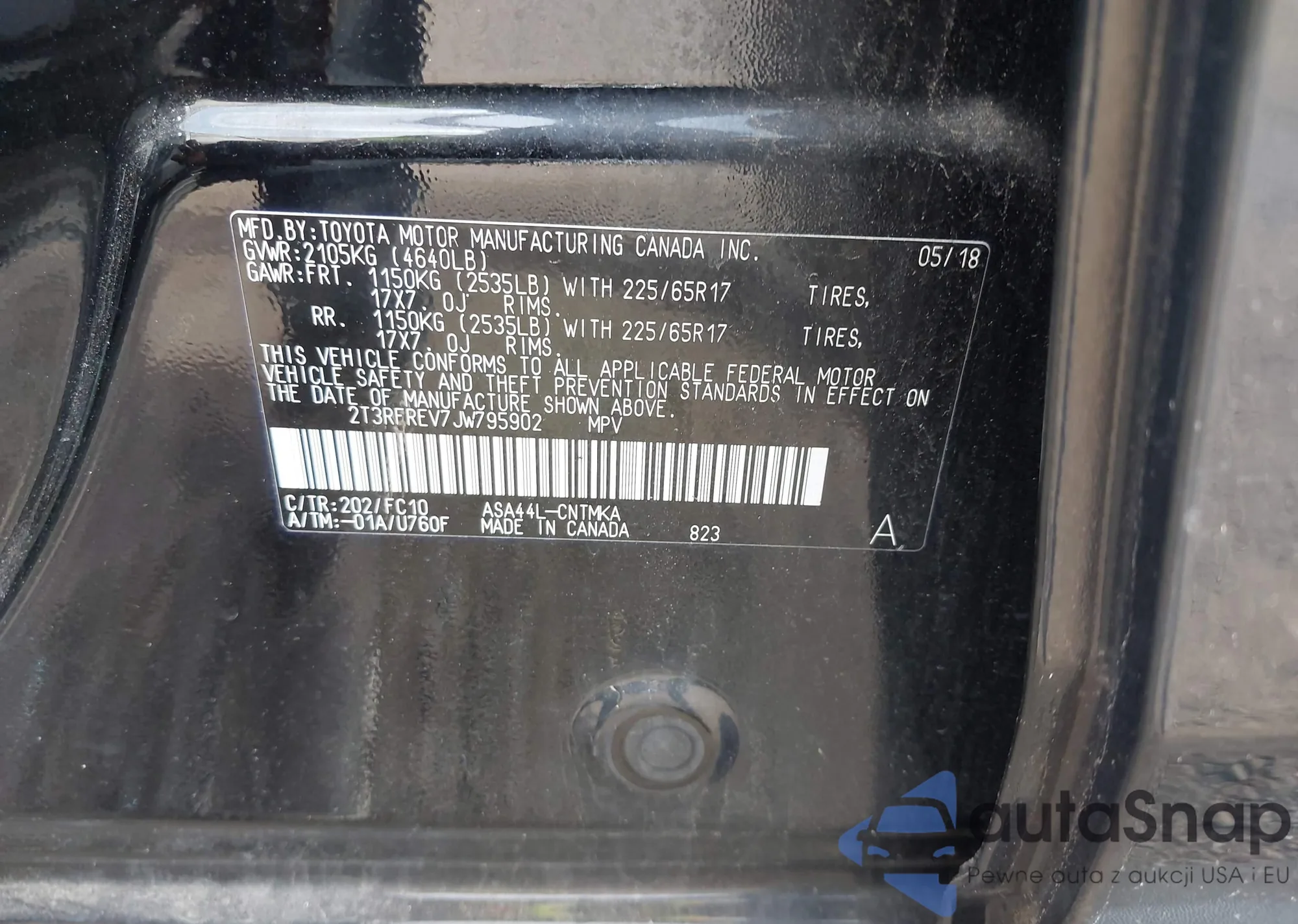 • VIN 2T3RFREV7JW795902