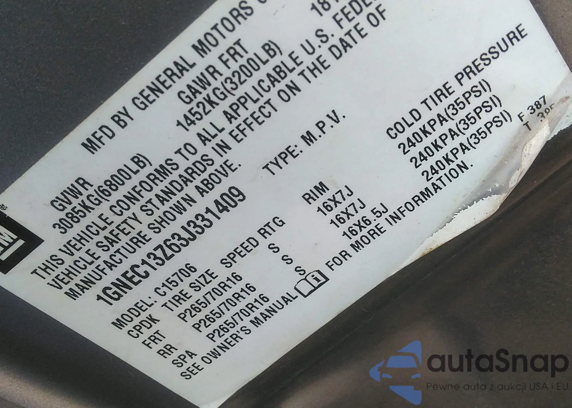 • VIN 1GNEC13Z63J331409