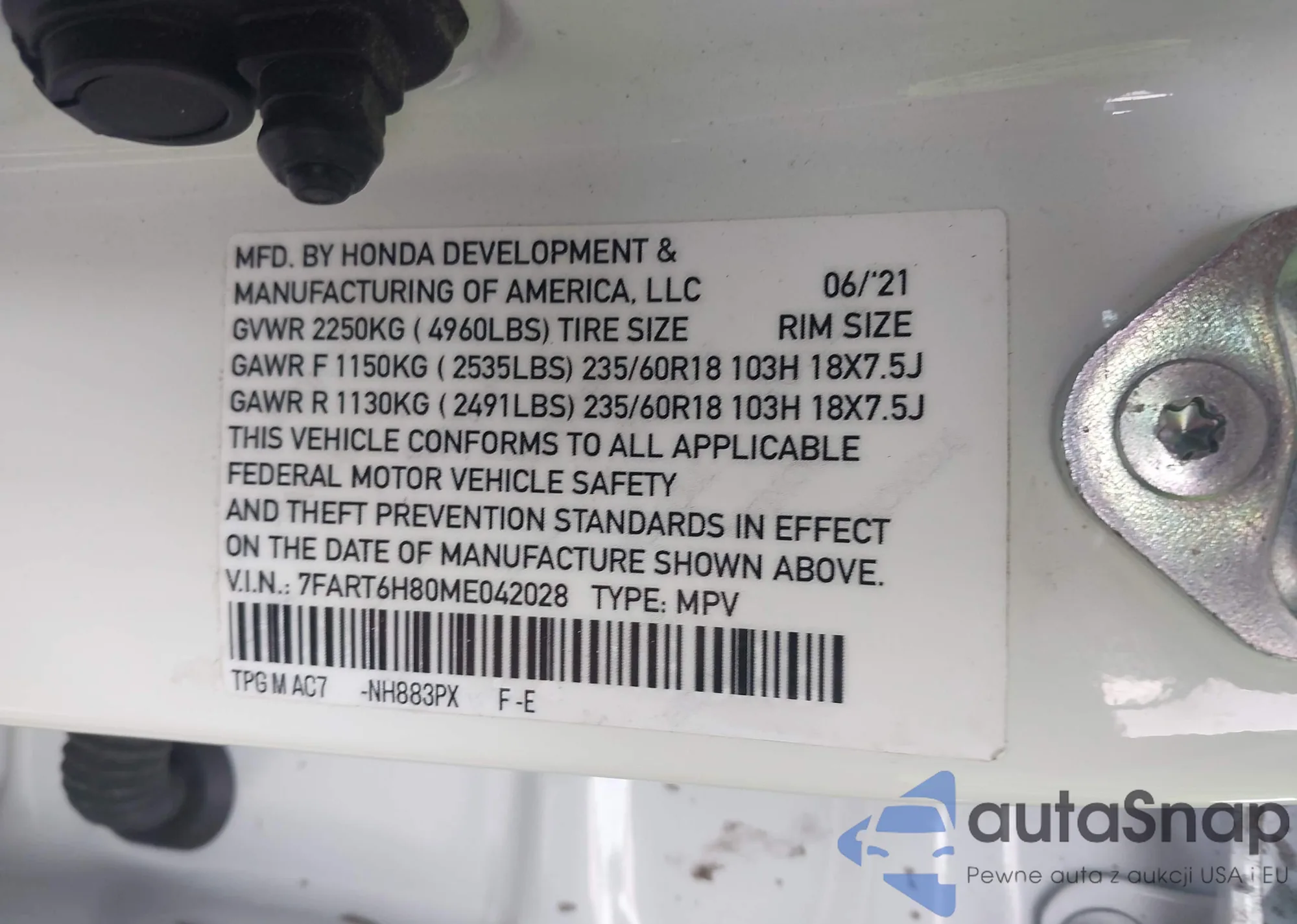 LOT: 42423092 VIN: 7FART6H80ME029098