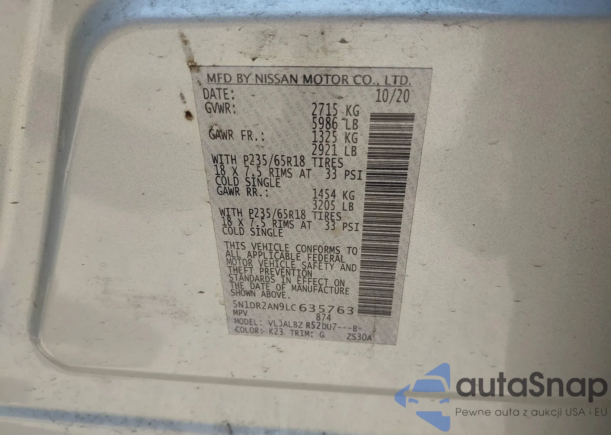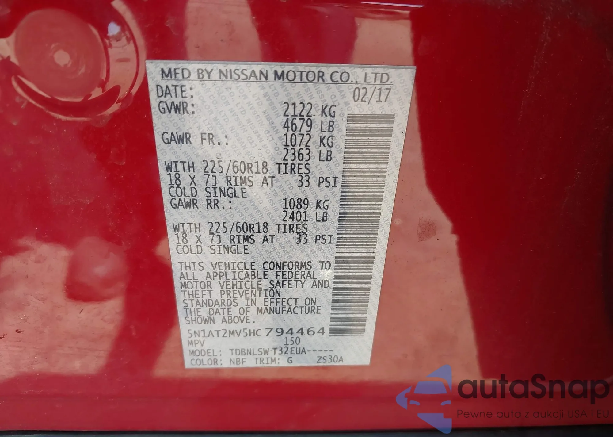 LOT: 42601387 VIN: 5N1AT2MV5HC794464