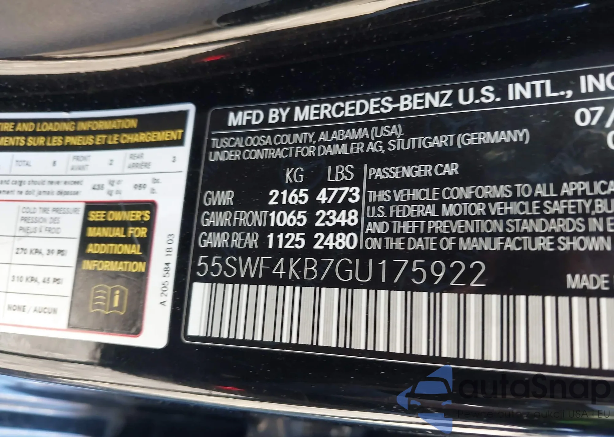 LOT: 43024779 VIN: 55SWF4KB7GU175922
