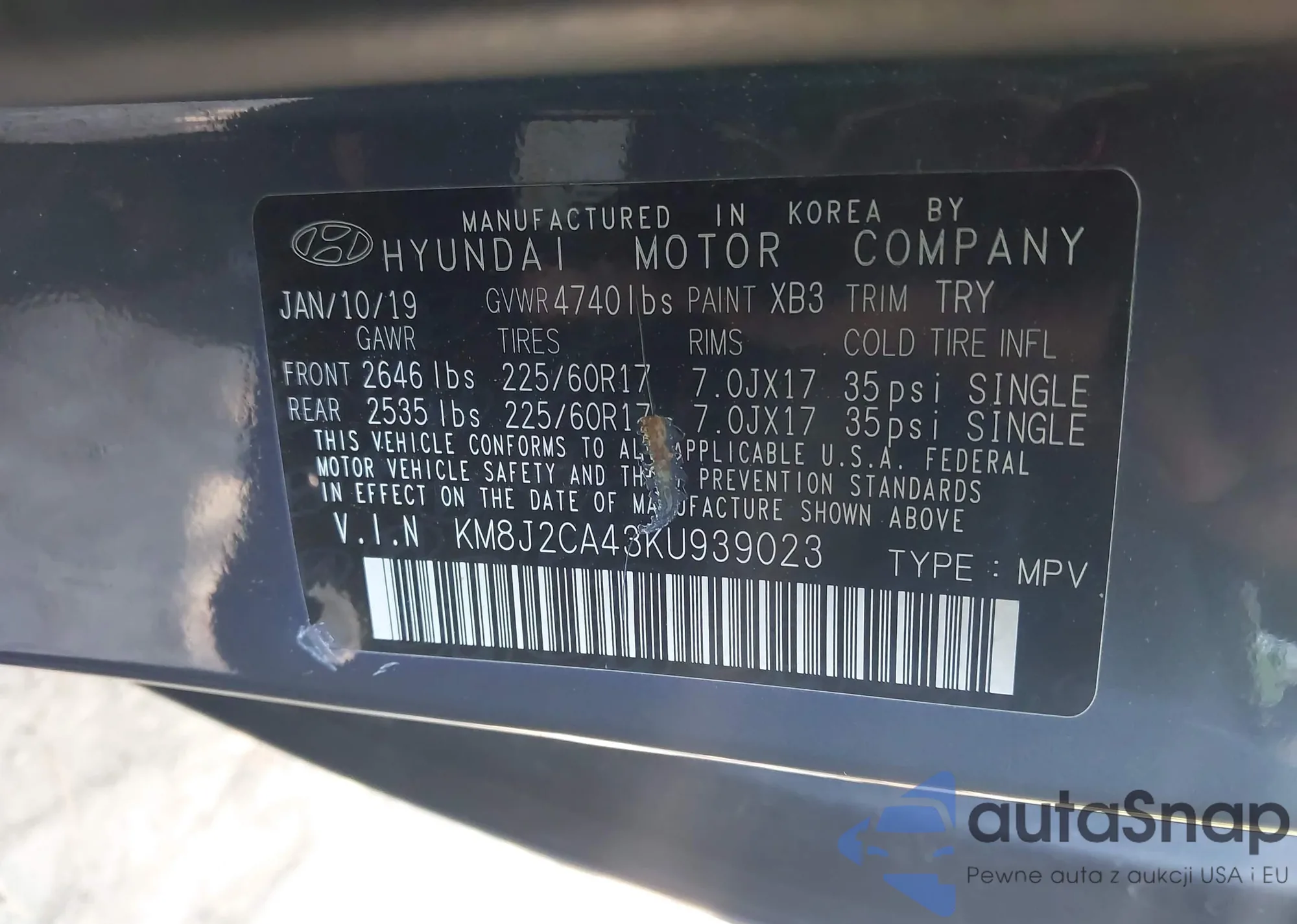 • VIN KM8J2CA43KU939023