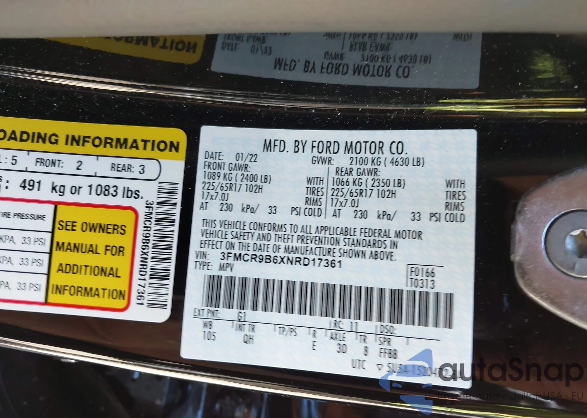 • VIN 3FMCR9B6XNRD17361