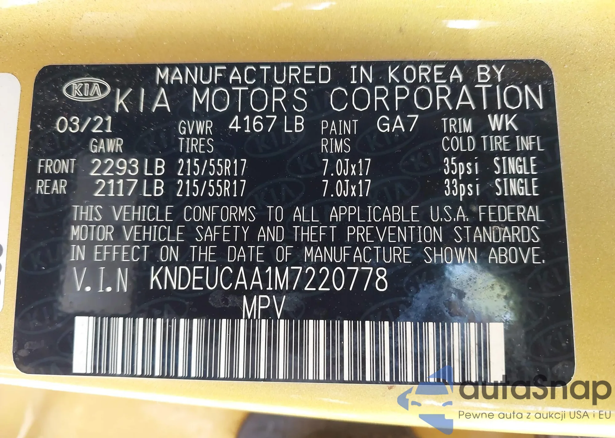• VIN KNDEUCAA1M7220778