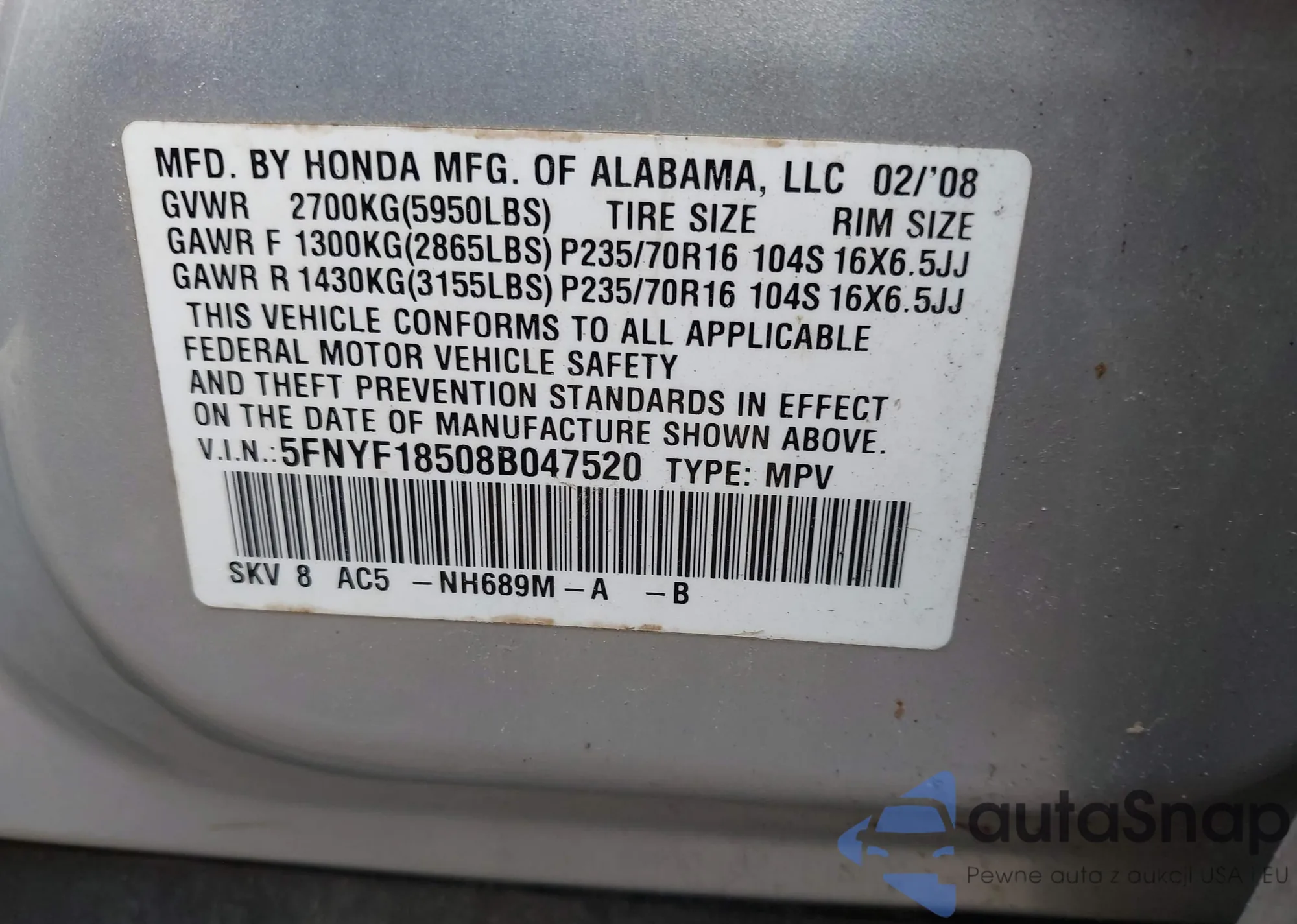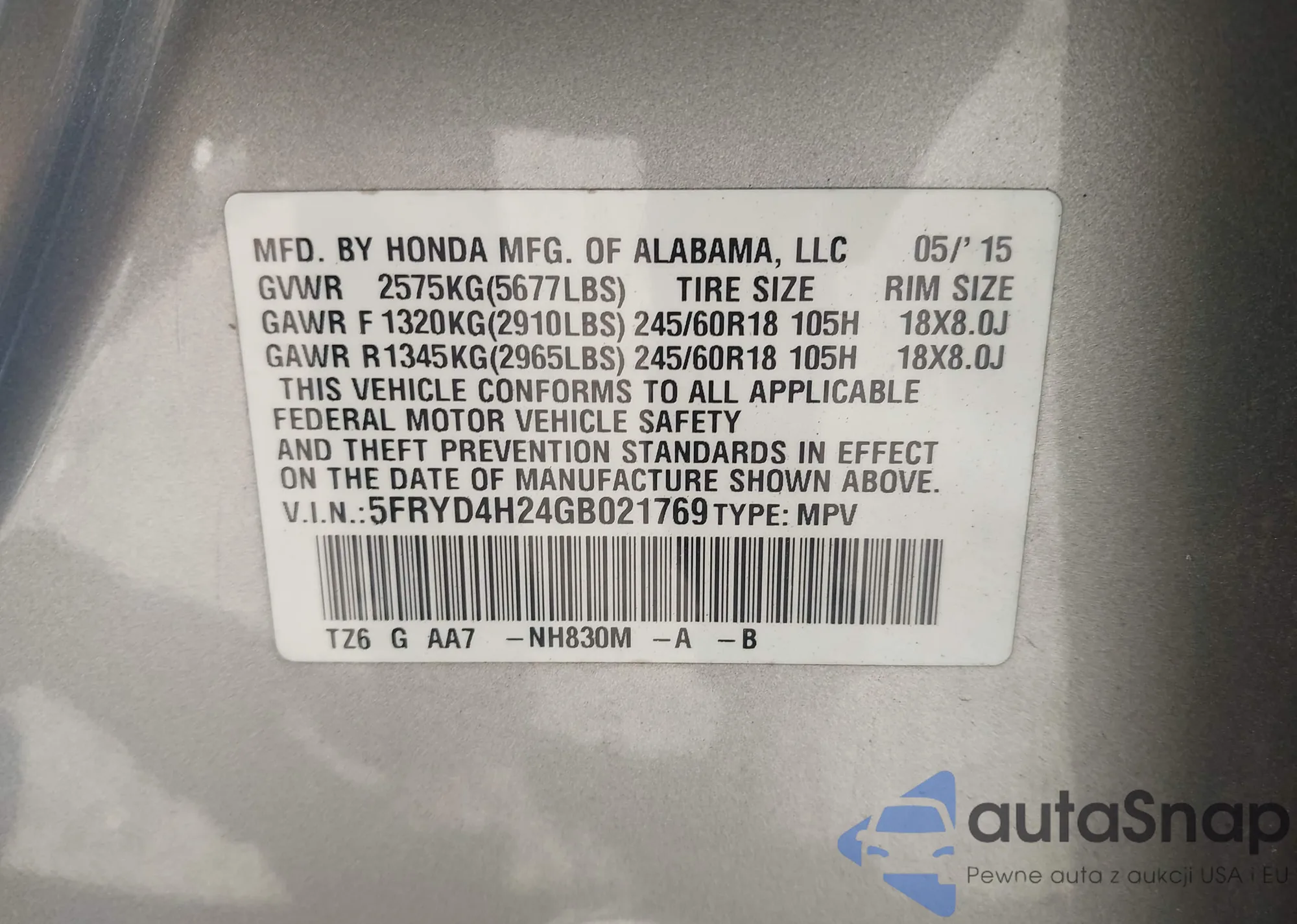 • VIN 5FRYD4H24GB021769