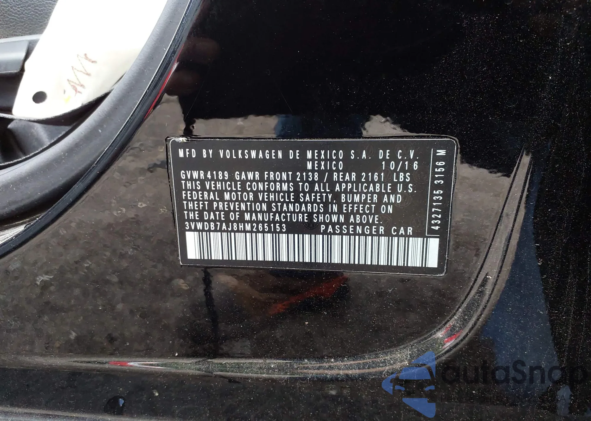 • VIN 3VWDB7AJ8HM265153