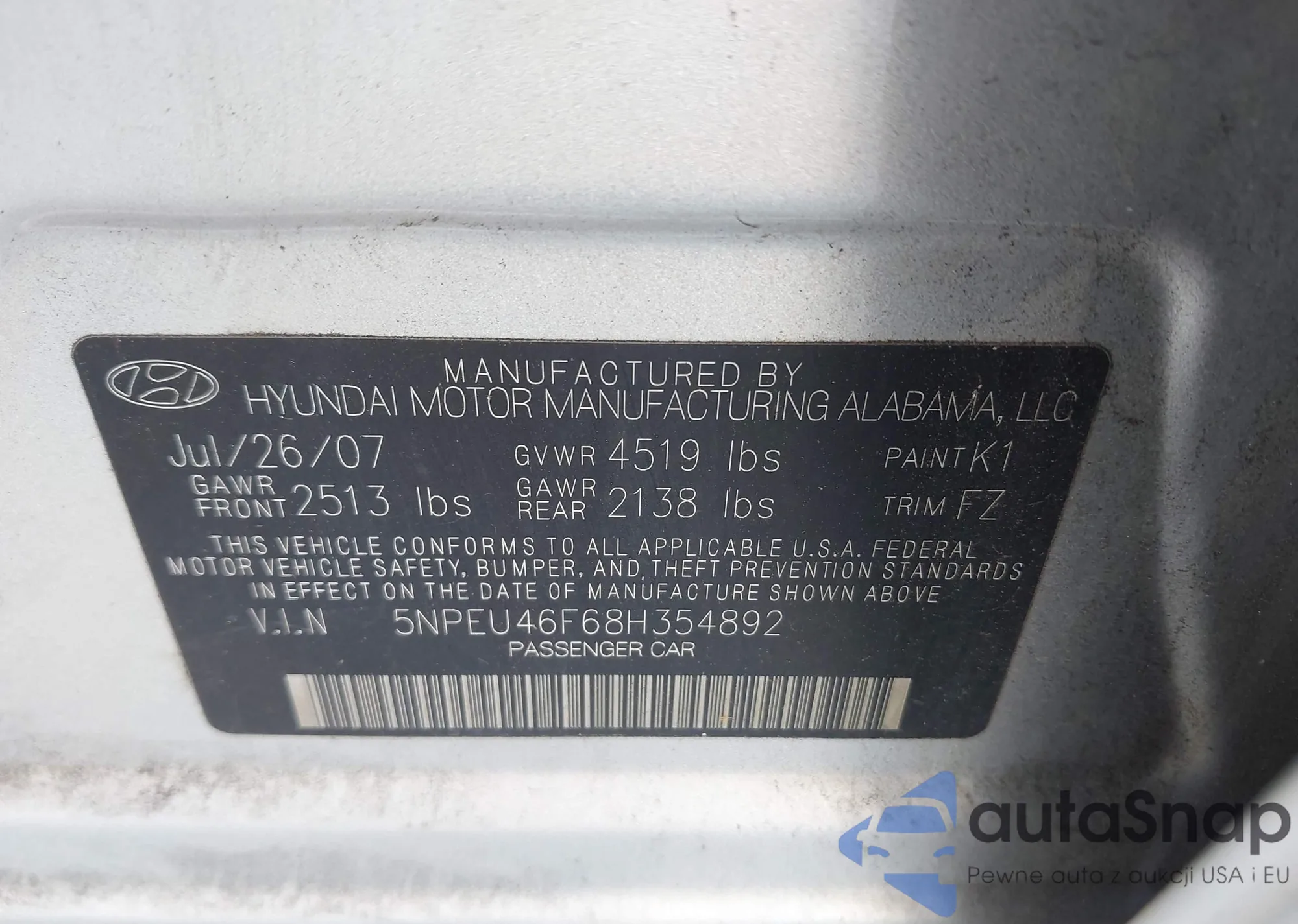 LOT: 43237259 VIN: 5NPEU46F68H354892