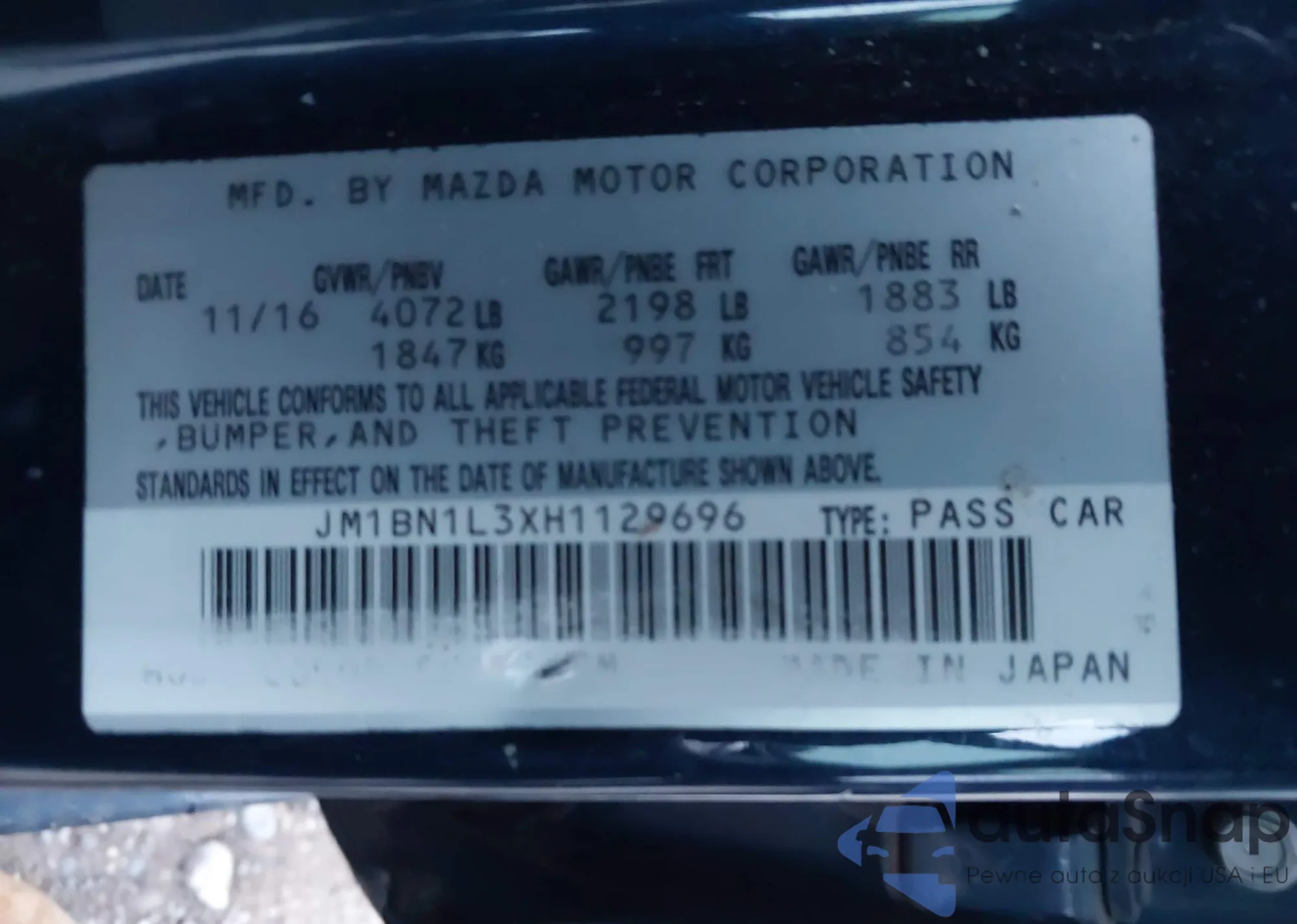 LOT: 43173543 VIN: JM1BN1L3XH1129696