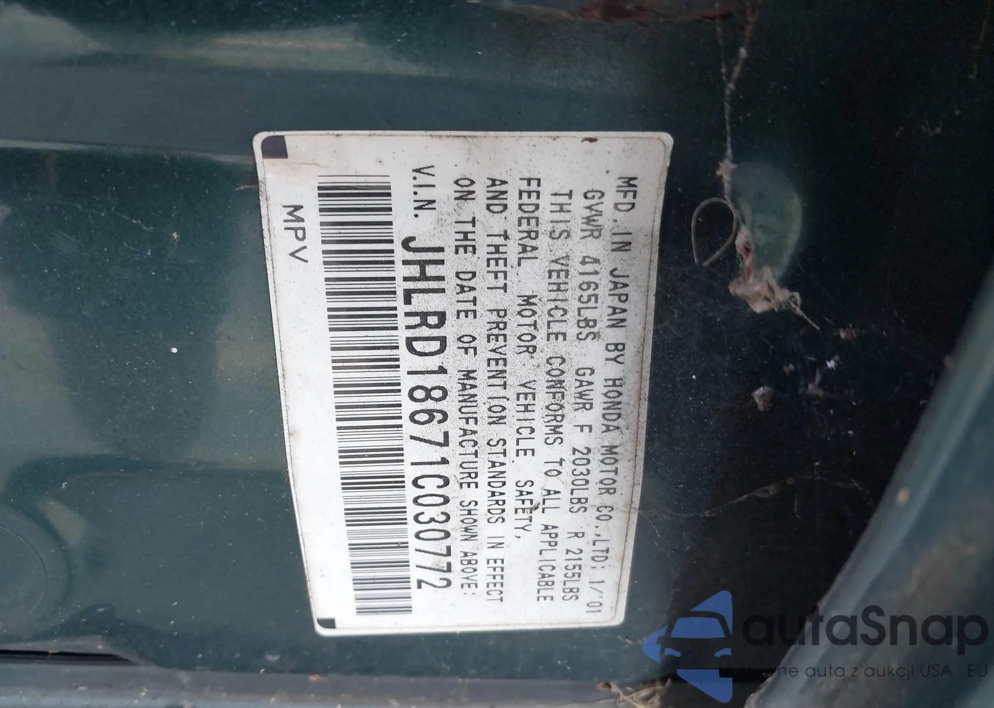 • VIN JHLRD18671C030772