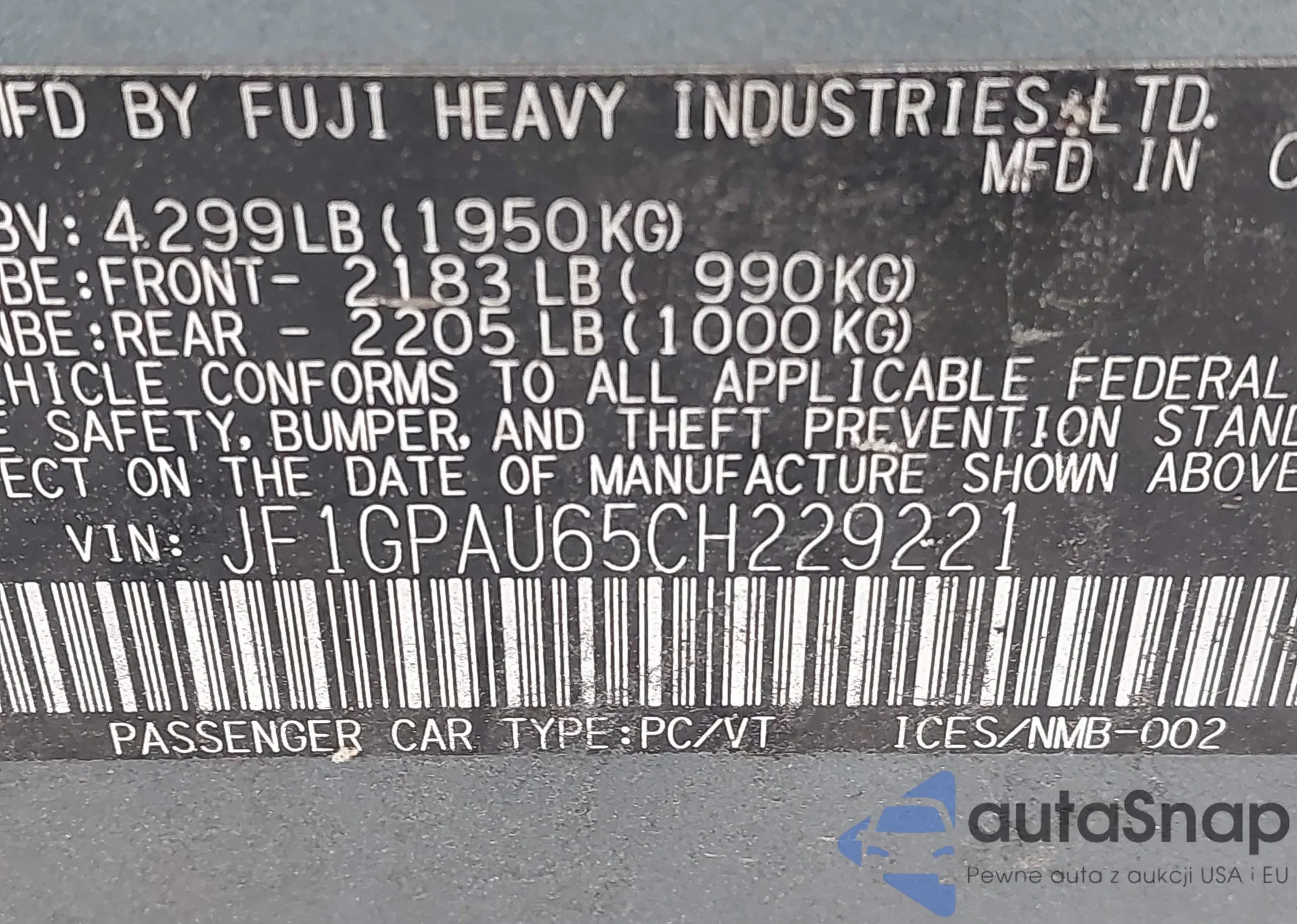 • VIN JF1GPAU65CH229221