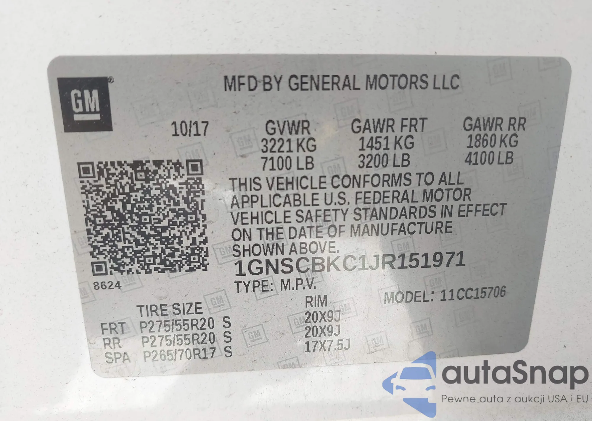 LOT: 42926054 VIN: 1GNSCBKC1JR151971