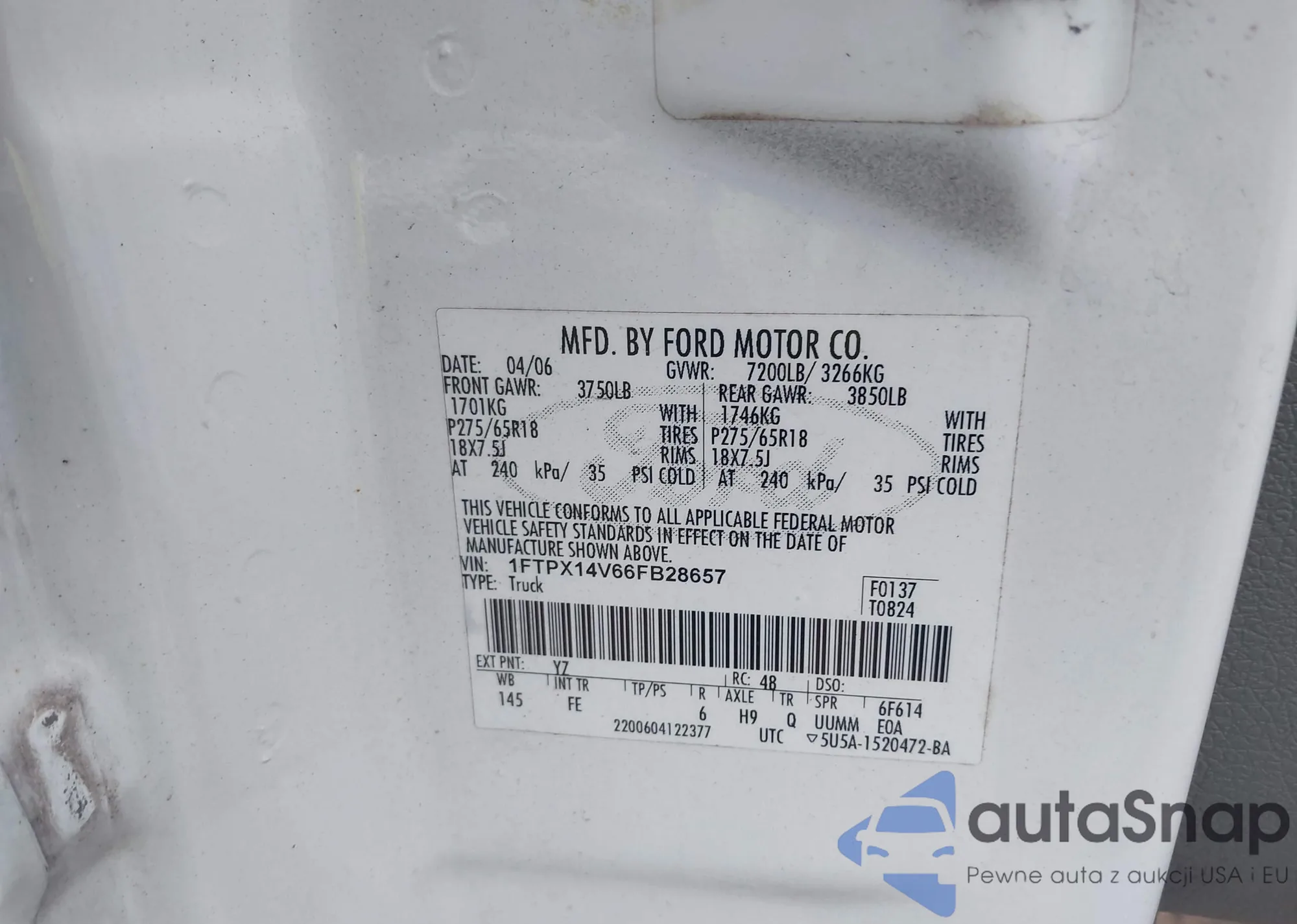 LOT: 43174592 VIN: 1FTPX14V66FB28657