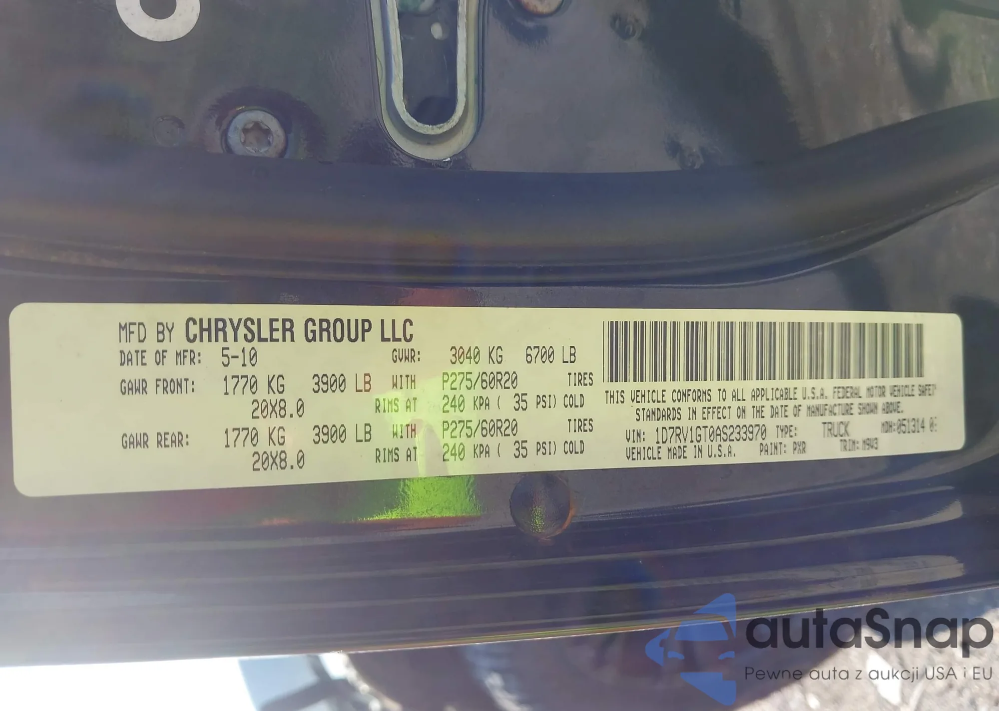 • VIN 1D7RV1GT0AS233970