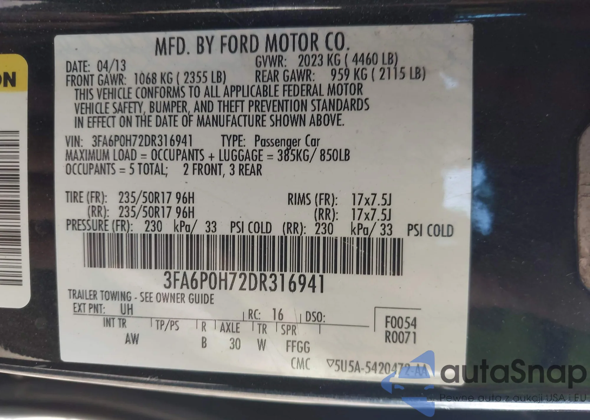 • VIN 3FA6P0H72DR316941