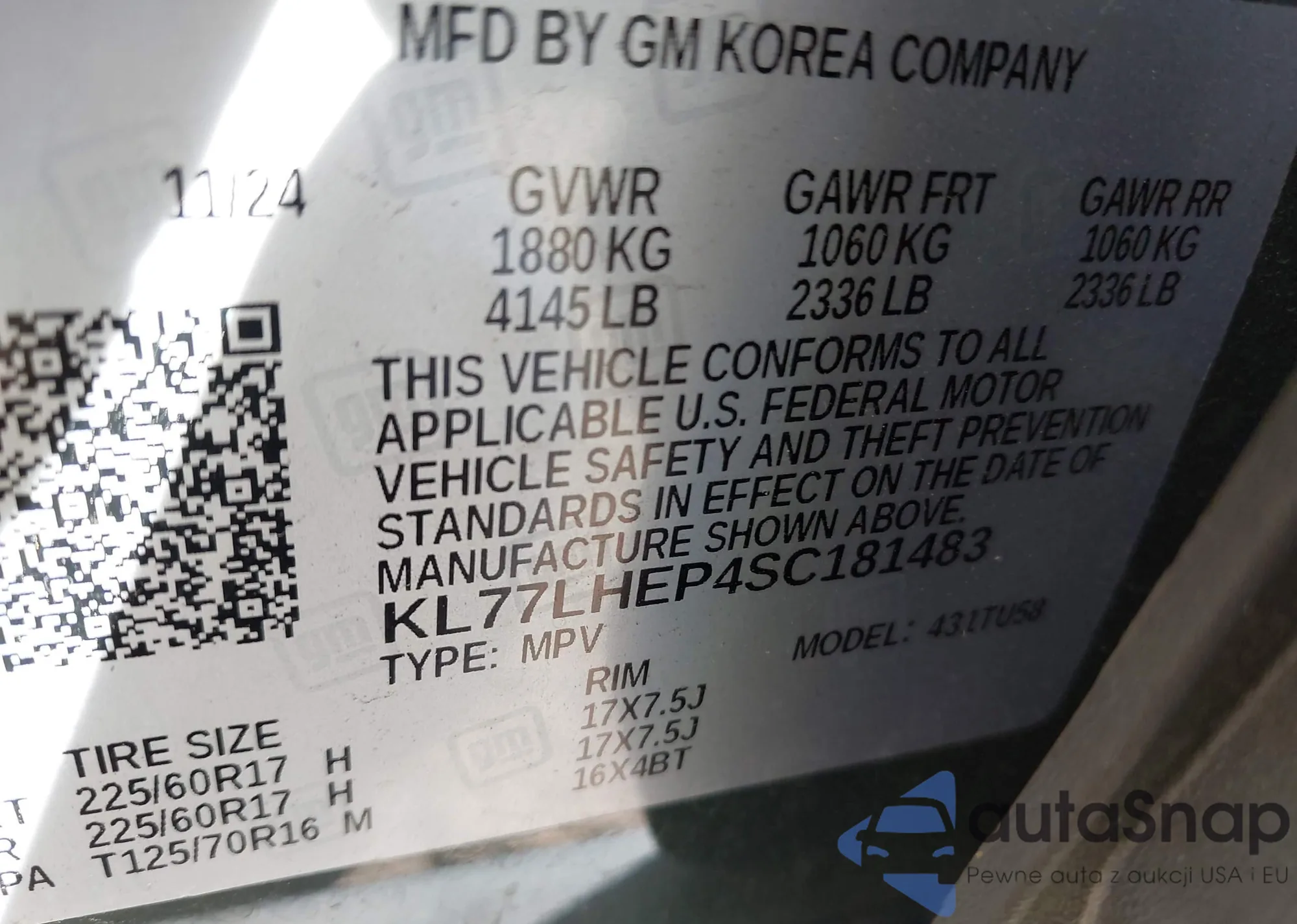 • VIN KL77LHEP4SC181483