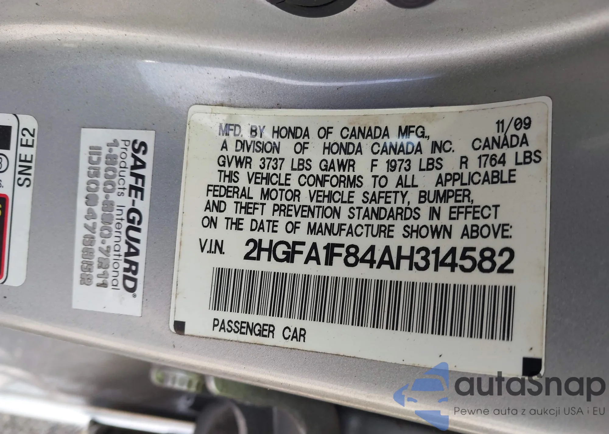 • VIN 2HGFA1F84AH314582