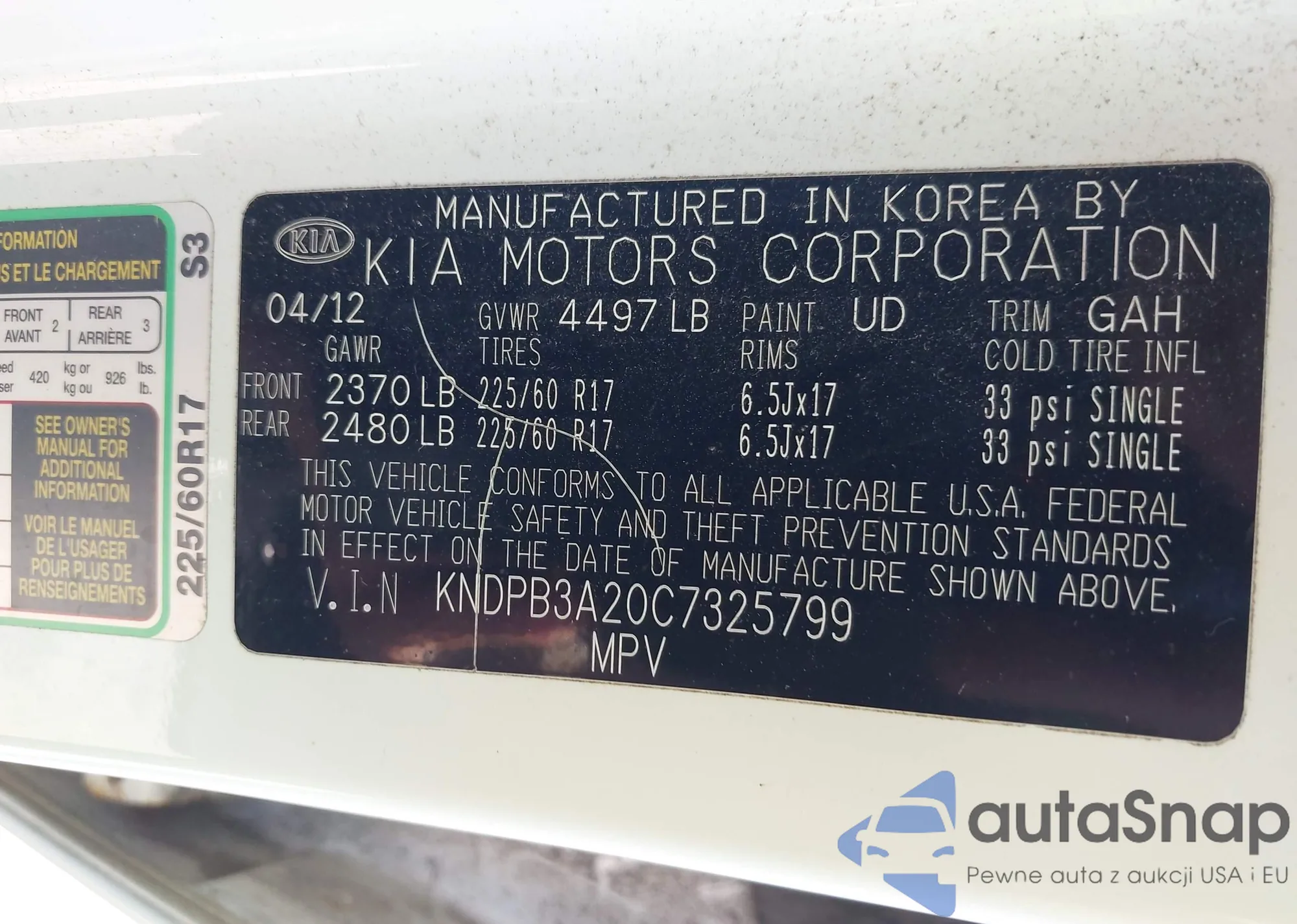 • VIN KNDPB3A20C7325799