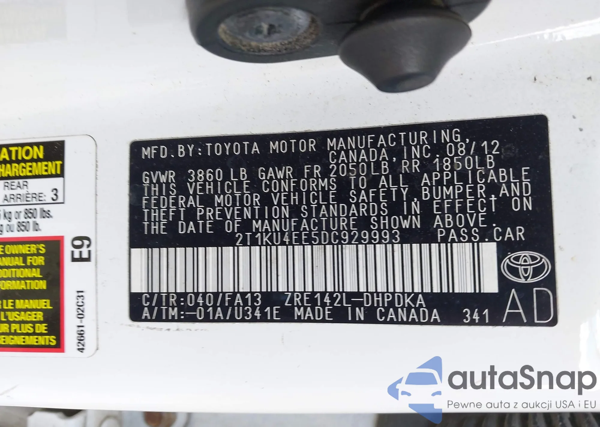 • VIN 2T1KU4EE5DC929993