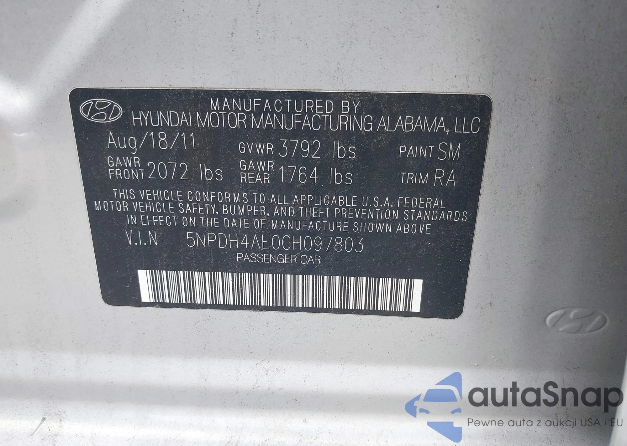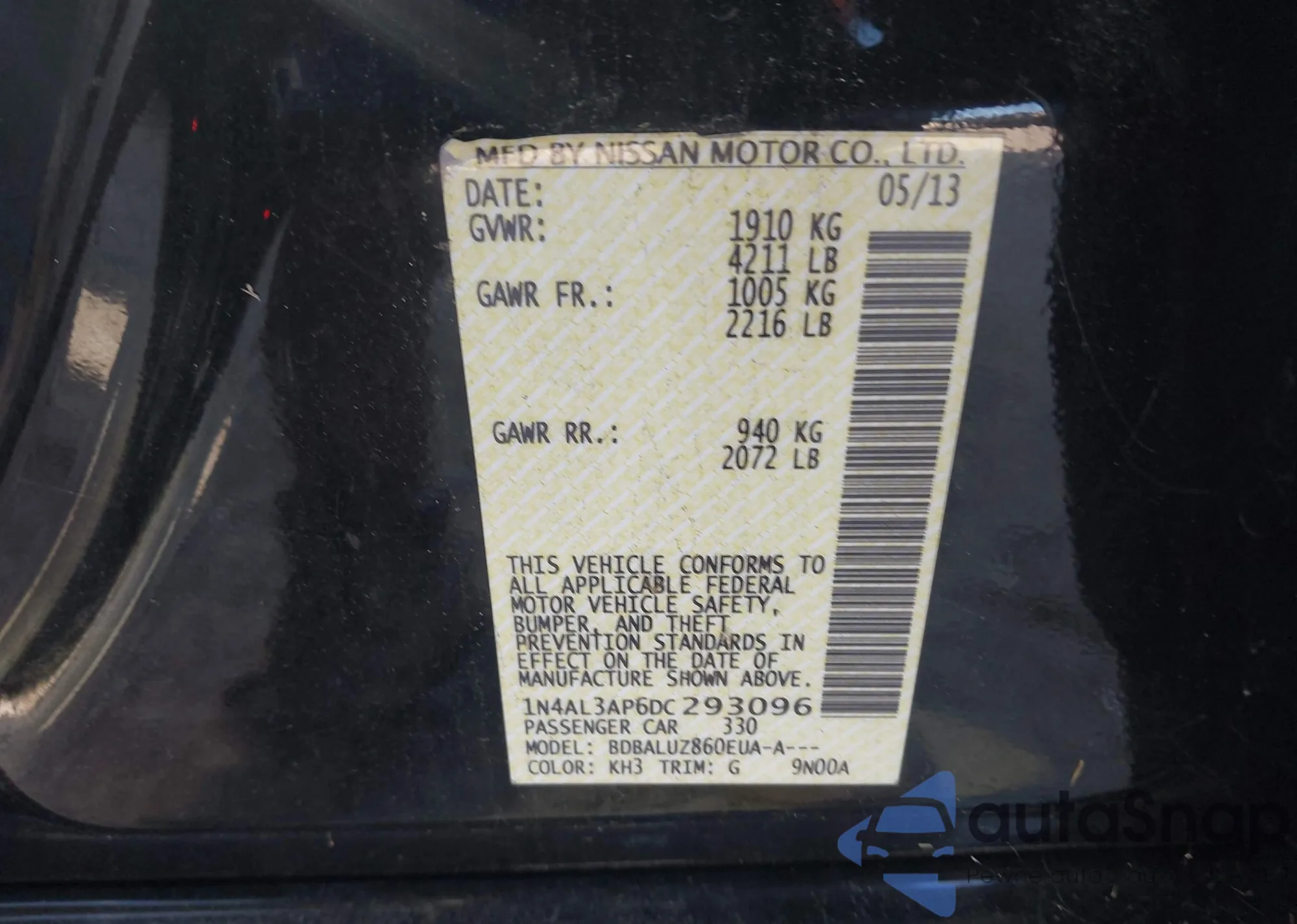 • VIN 1N4AL3AP6DC293096