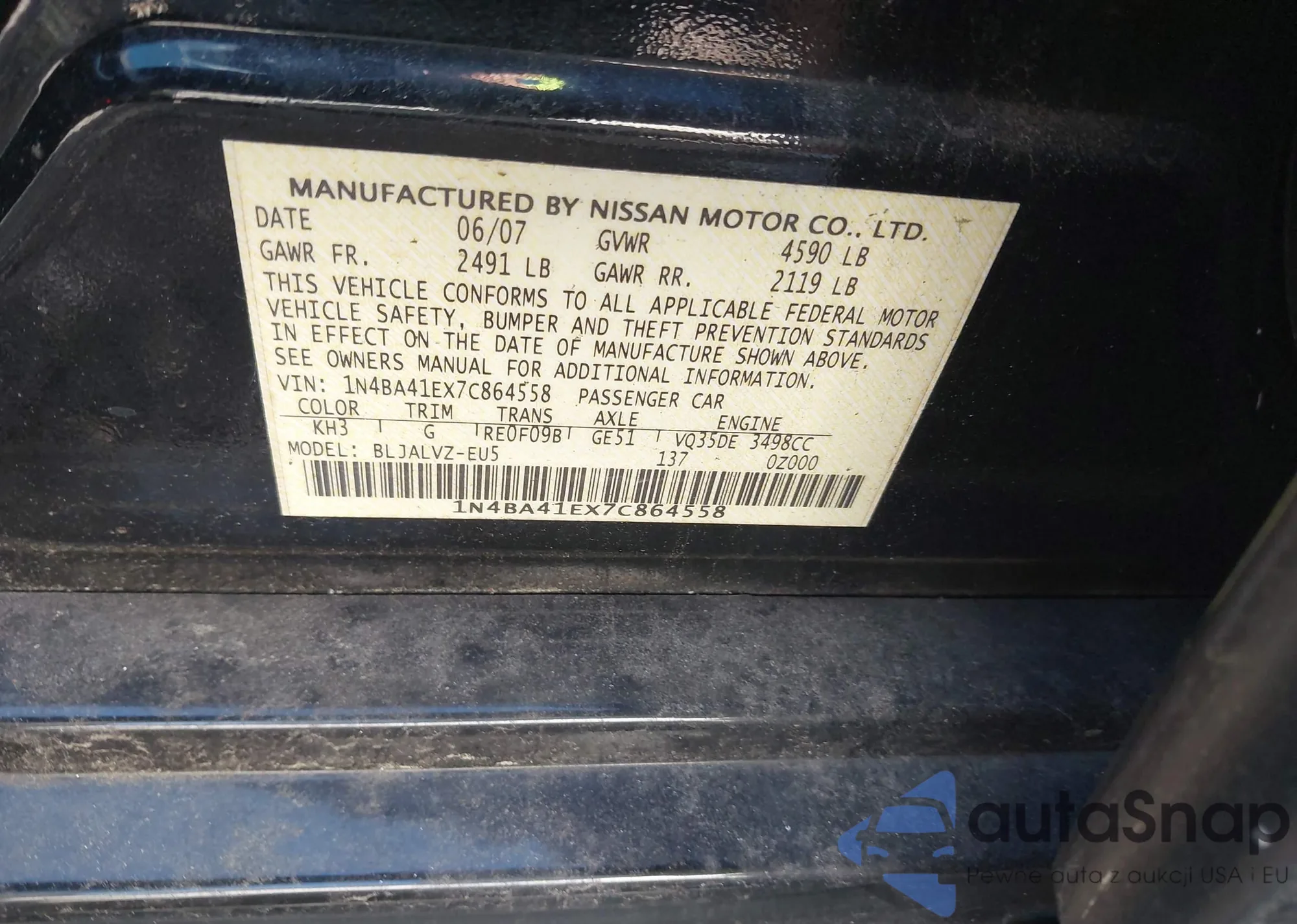 • VIN 1N4BA41EX7C864558