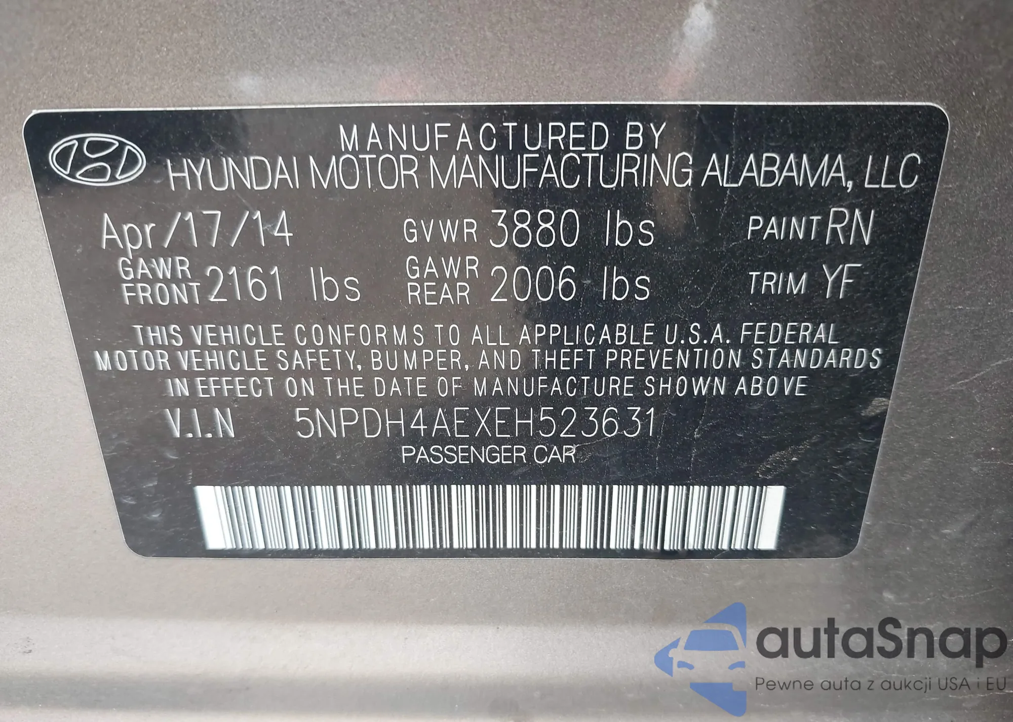 • VIN 5NPDH4AEXEH523631