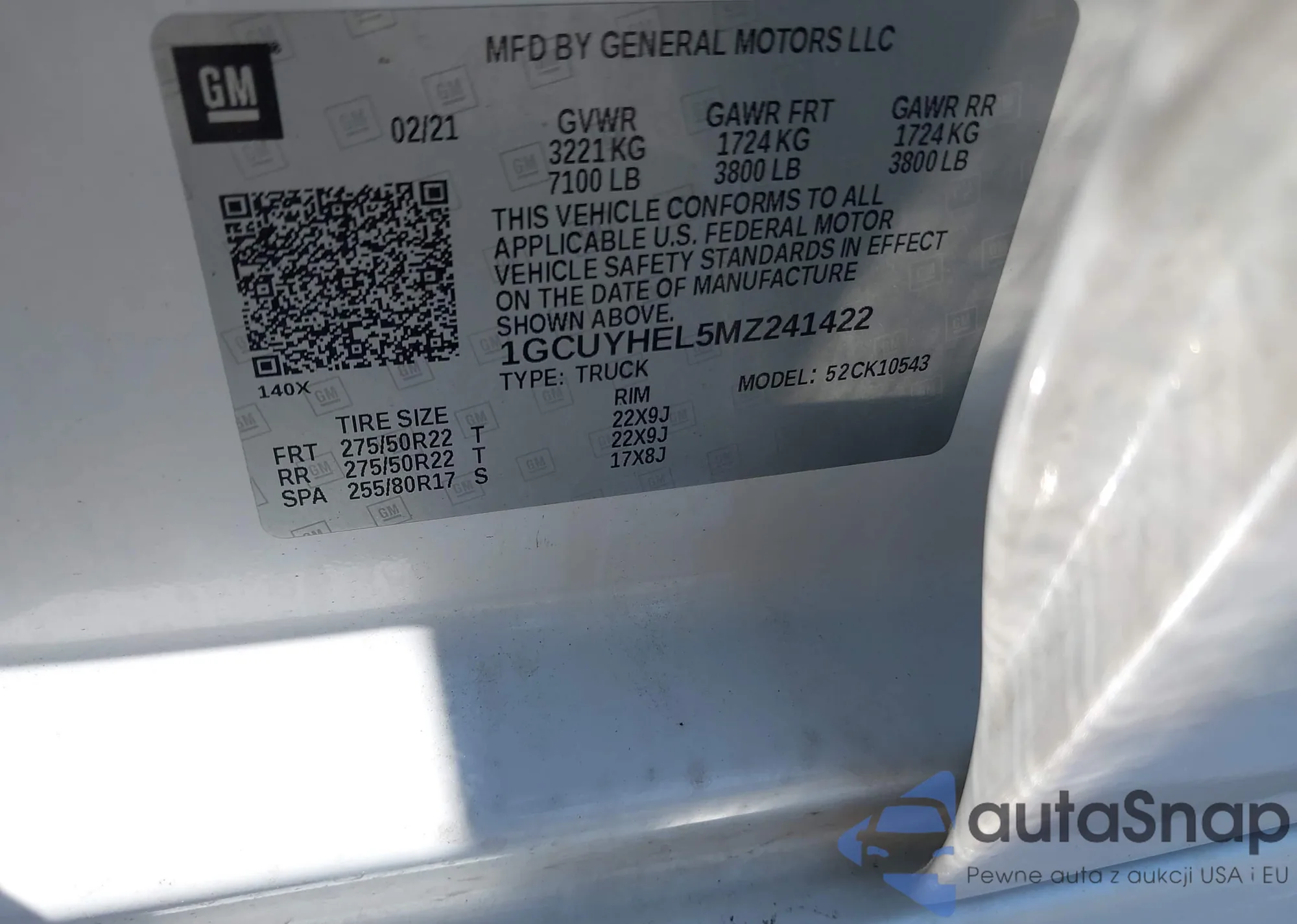 LOT: 43088986 VIN: 1GCUYHEL5MZ241422
