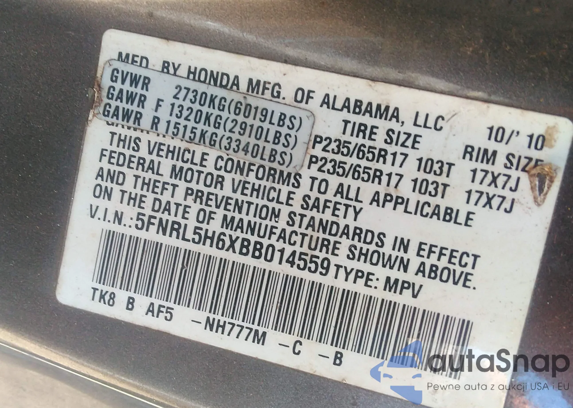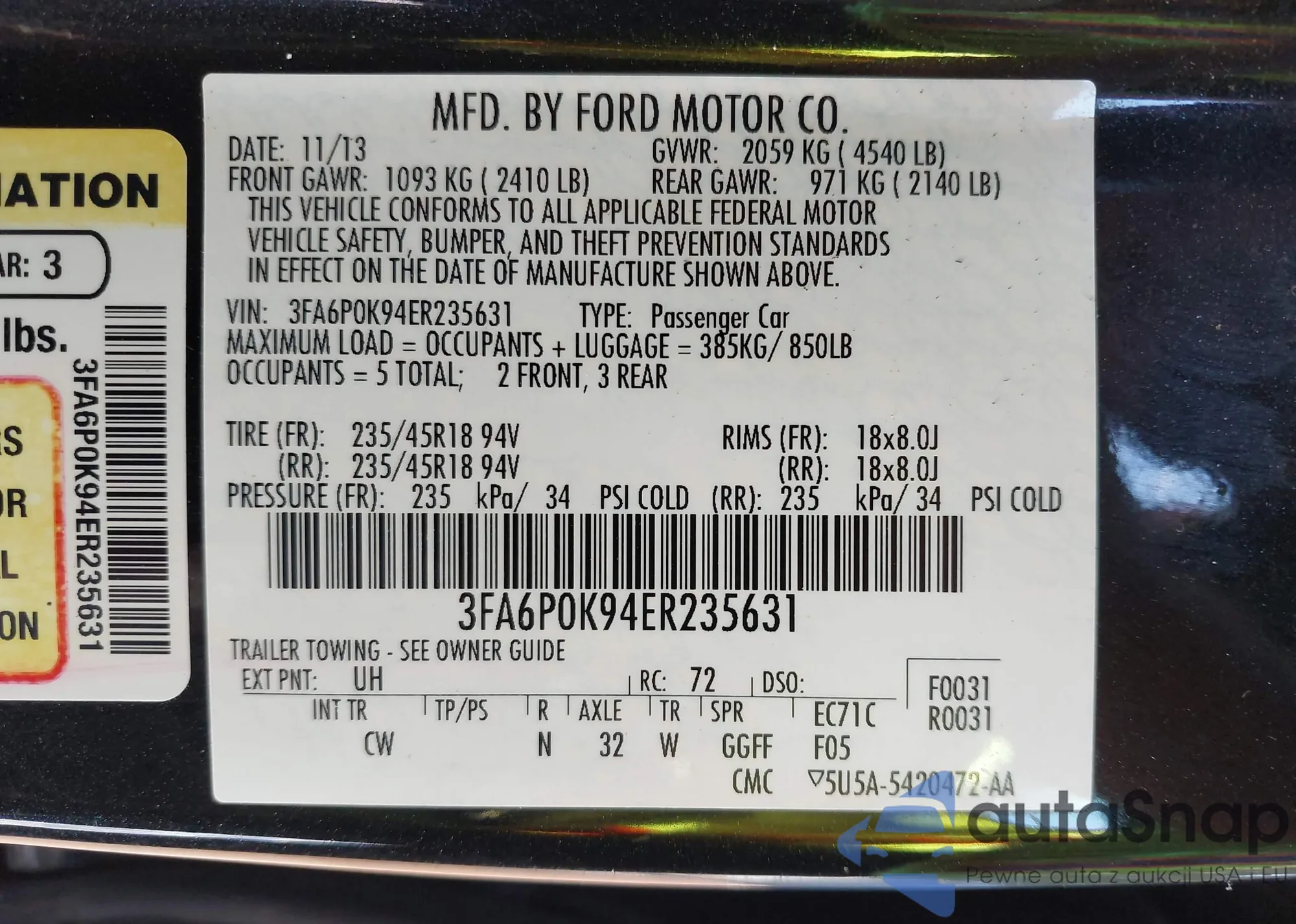 • VIN WAUGFAFC7DN081671