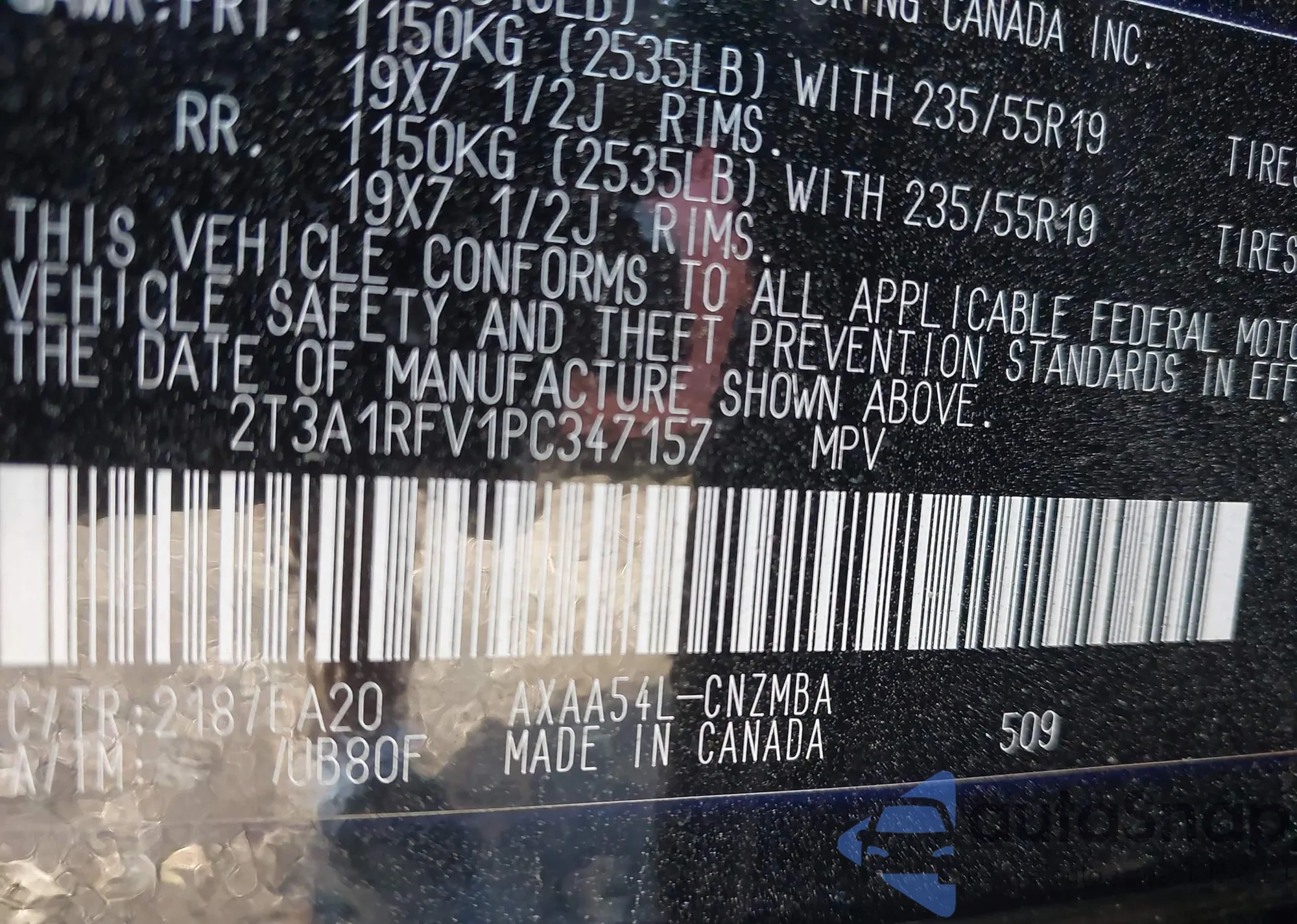 • VIN 2T3A1RFV1PC347157