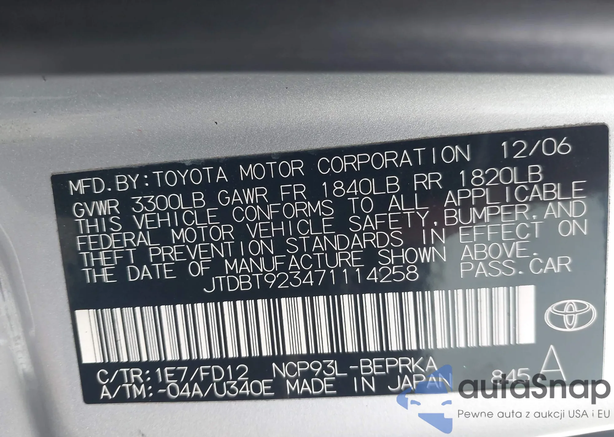 • VIN JTDBT923471114258