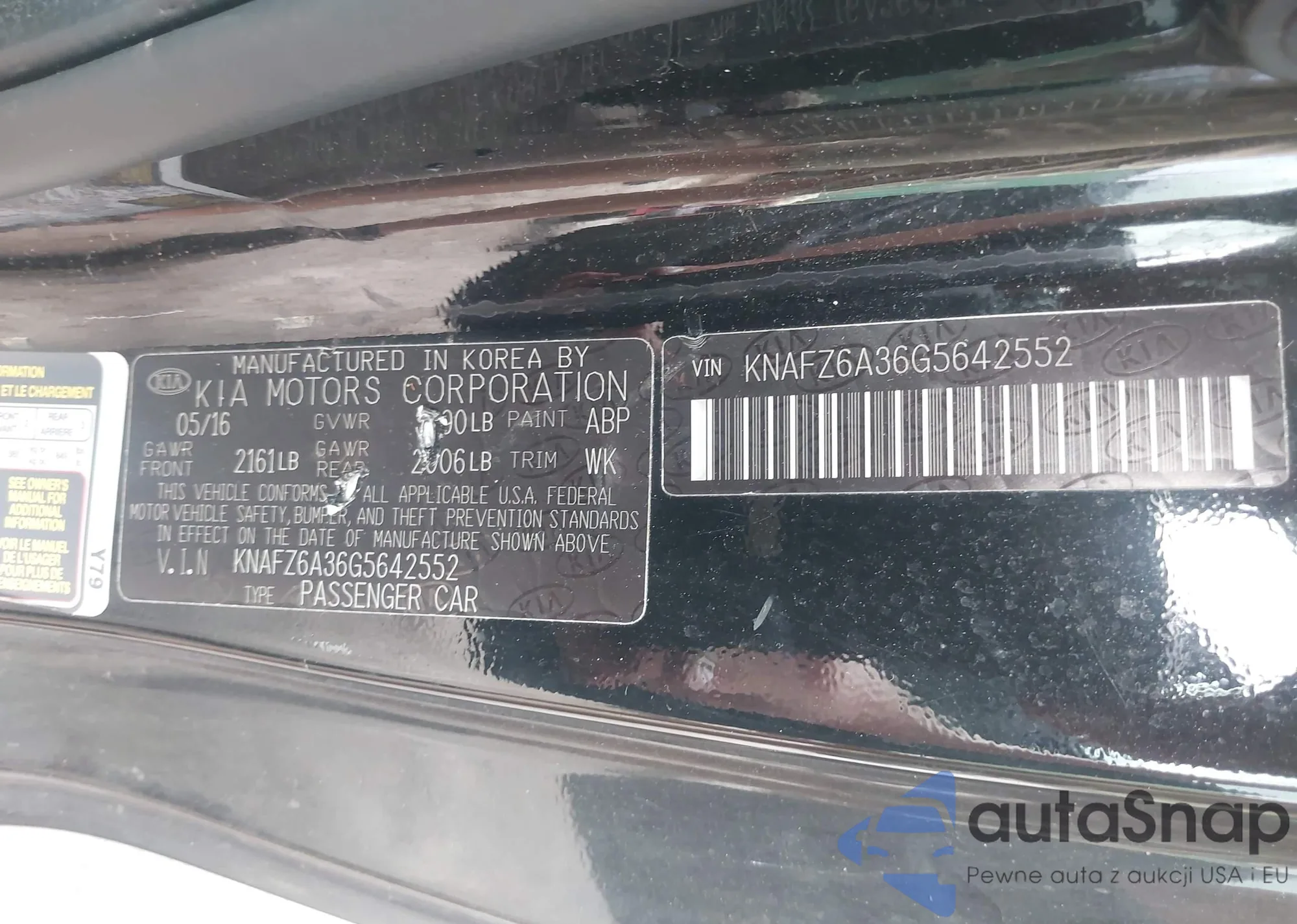LOT: 42721878 VIN: KNAFZ6A36G5642552