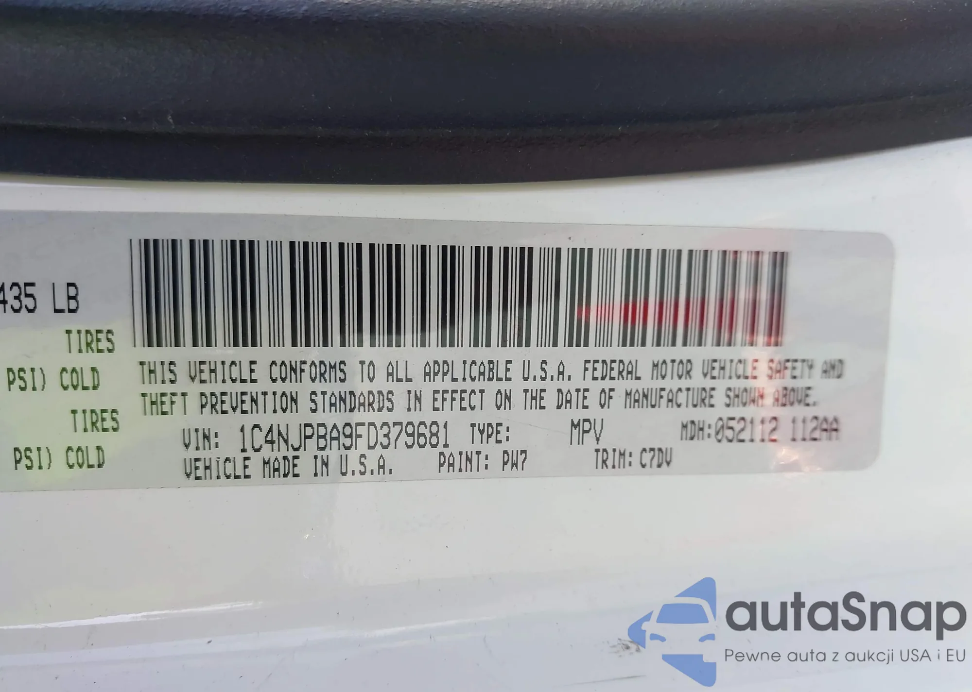 LOT: 42371006 VIN: 2C4RC1CG9CR143732